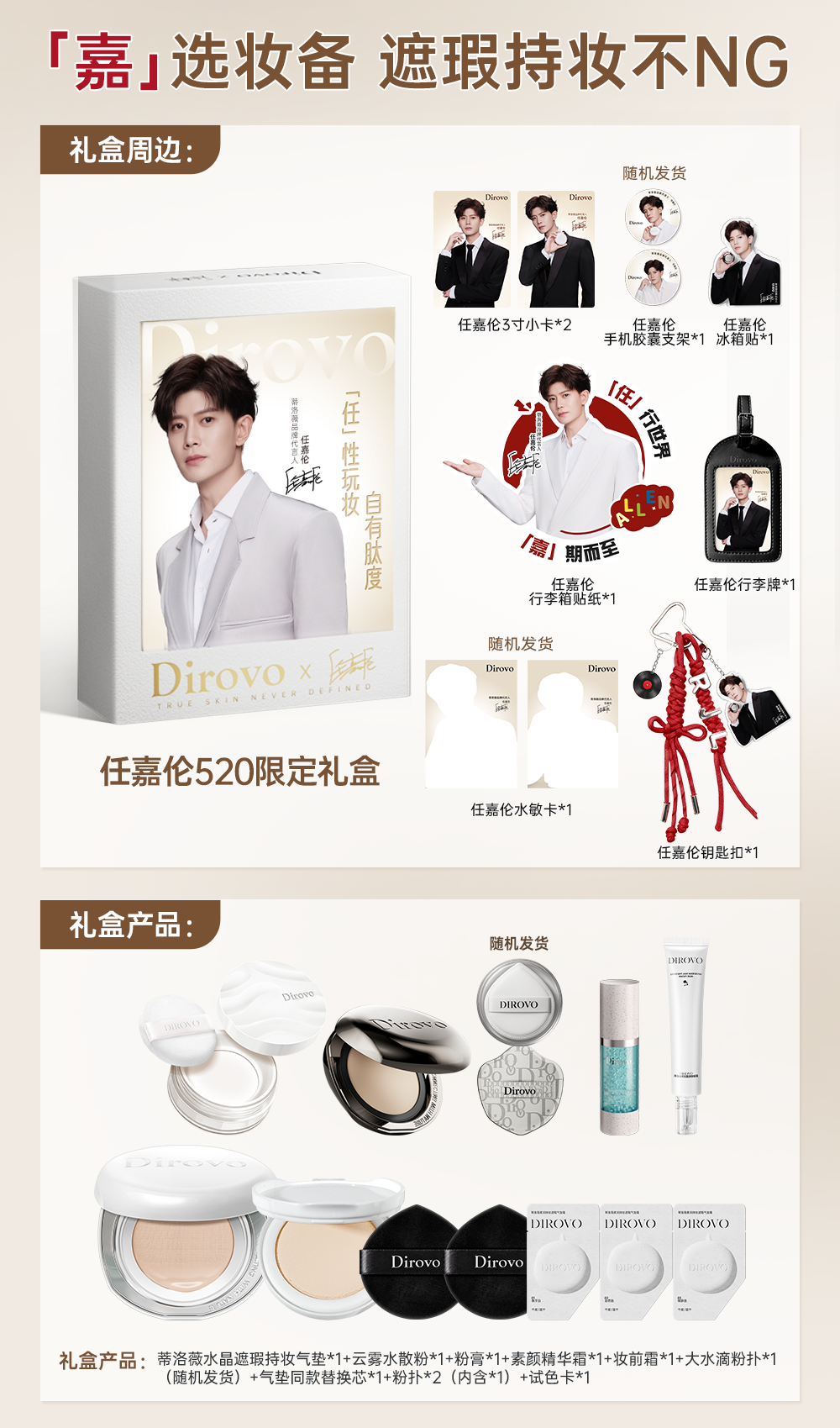 【任嘉伦同款】蒂洛薇保湿肽系列限定520大礼盒水晶气垫+粉膏+水散粉+素颜精华霜+妆前霜【周边退货需退回】