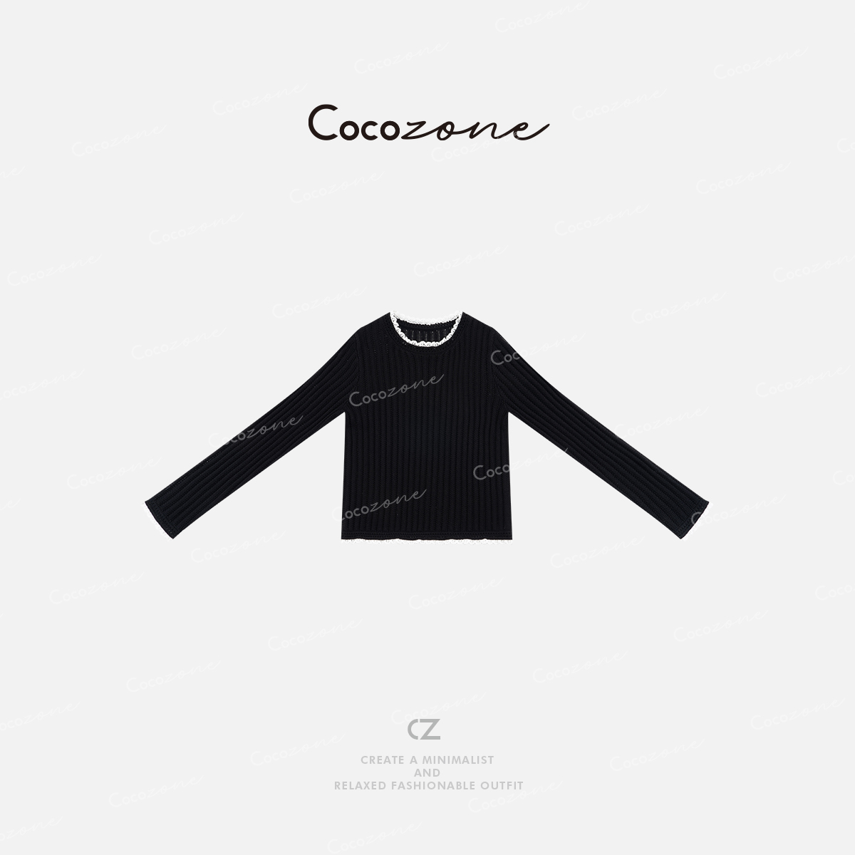 COCO ZONE 春季新款宽松显瘦撞色圆领长袖针织衫ACD2A0127