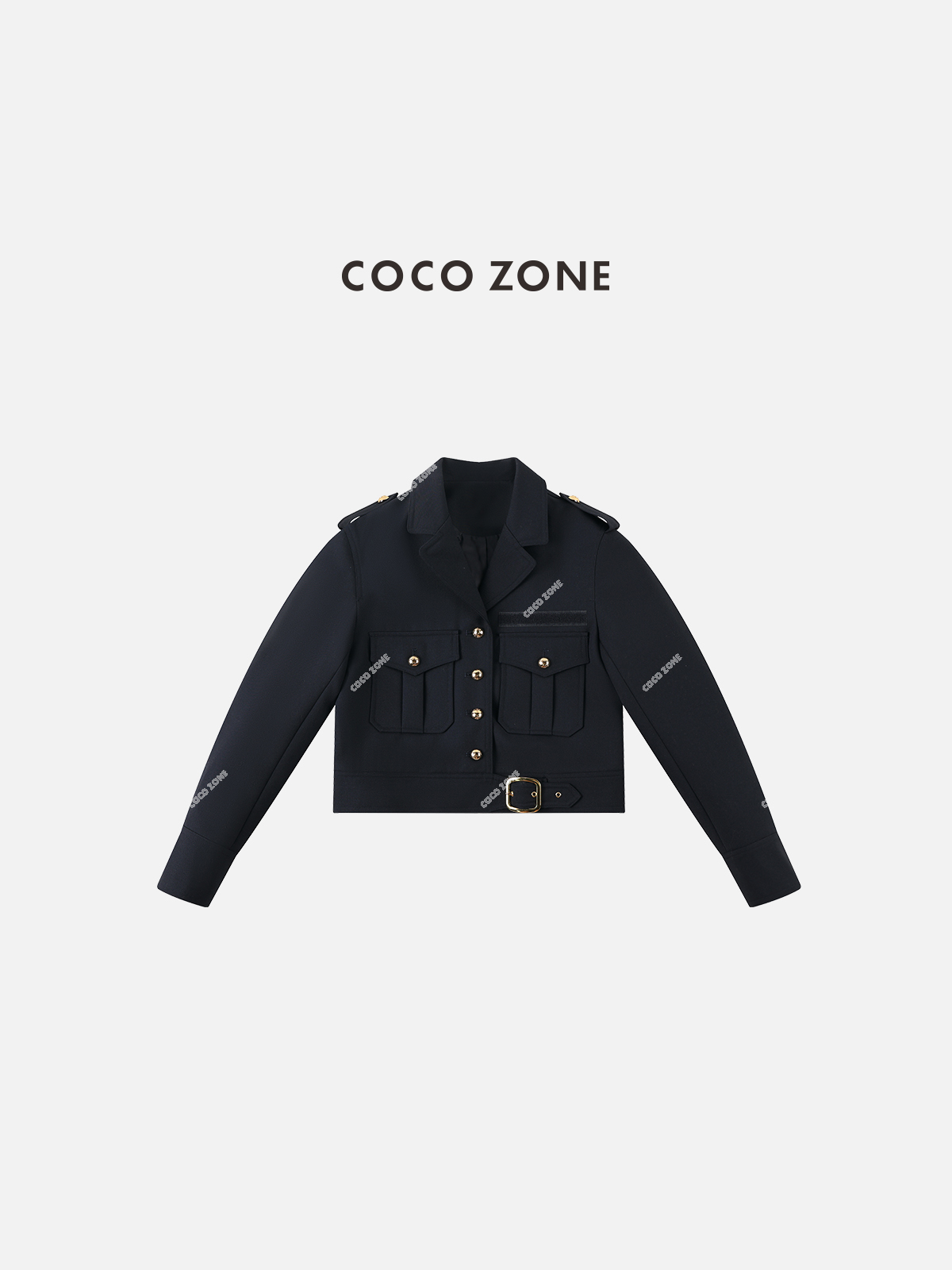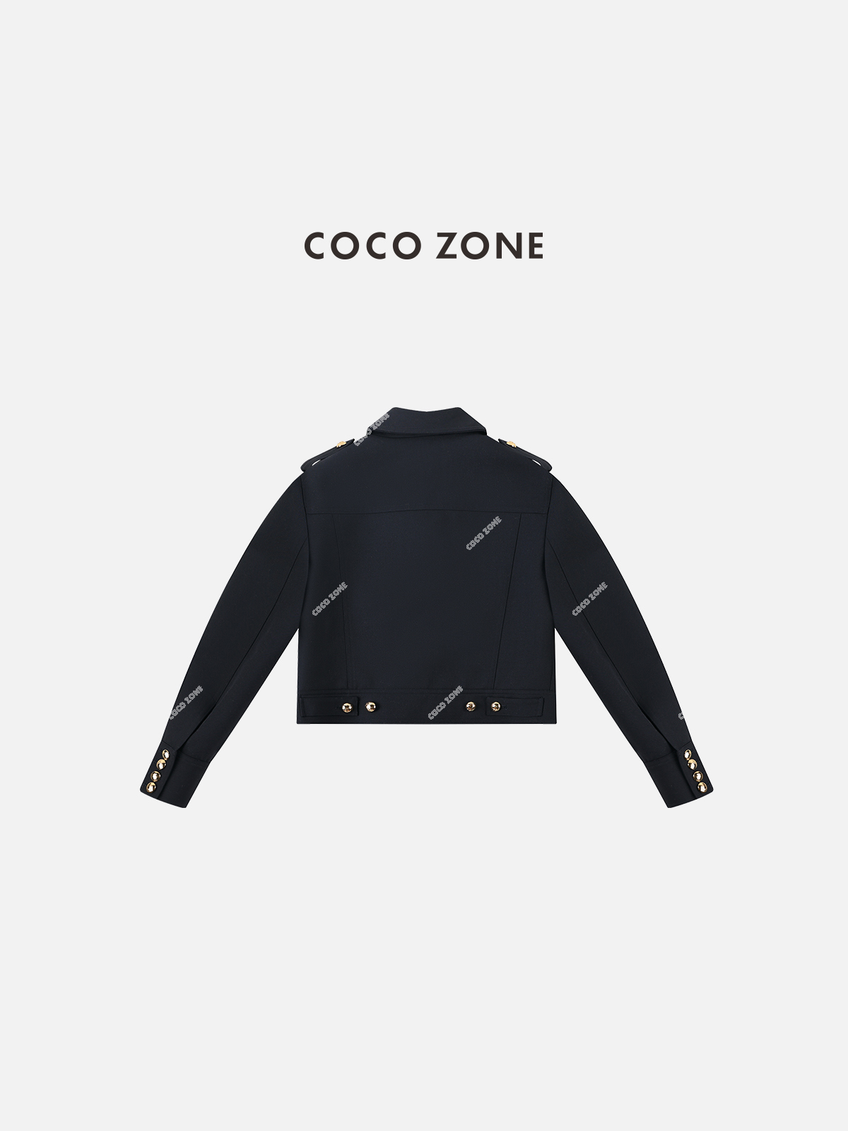COCO ZONE气质金扣装饰外套短款猎装夹克上衣 23C19176