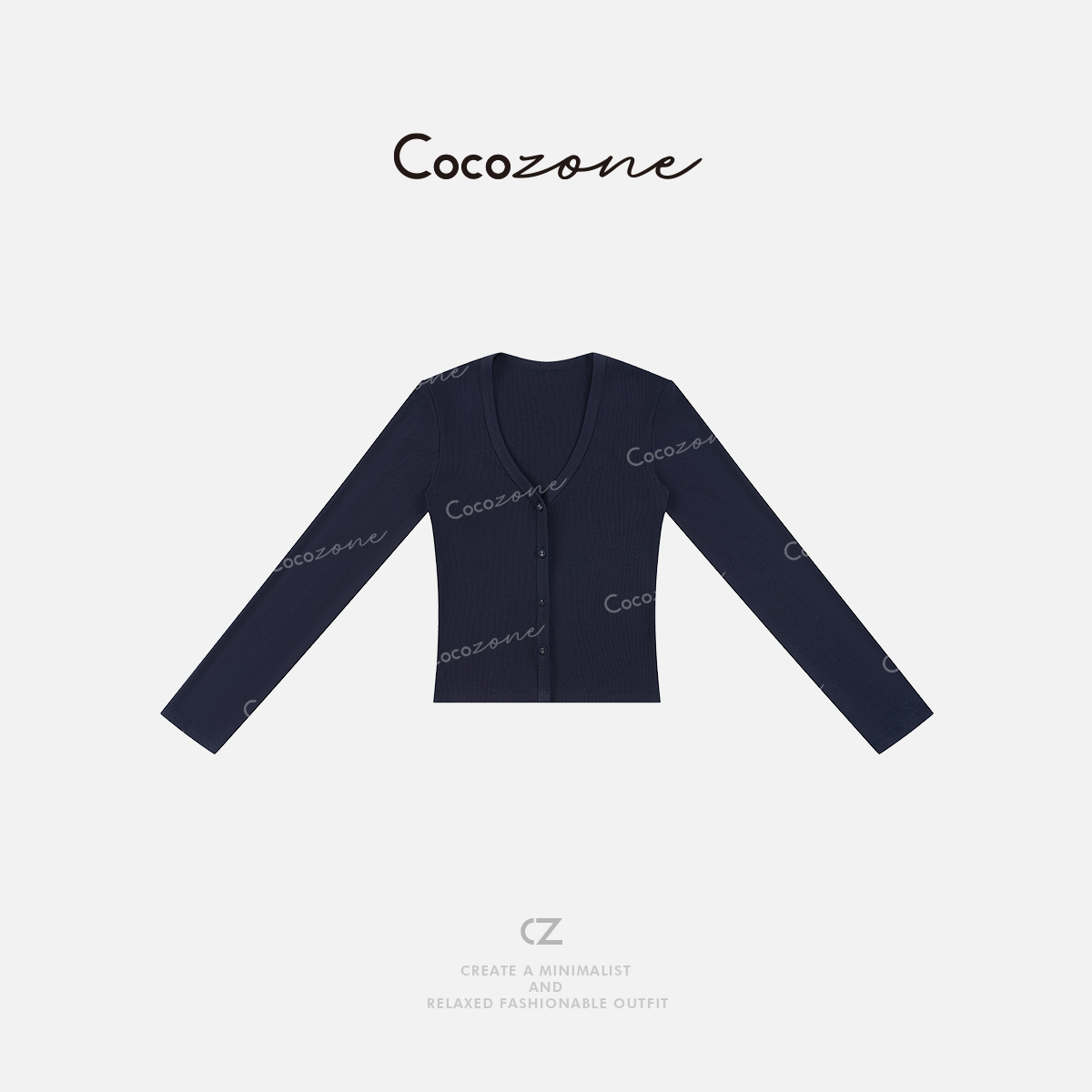 COCO ZONE 春季高级感纯色V领长袖针织开衫CD1A0296