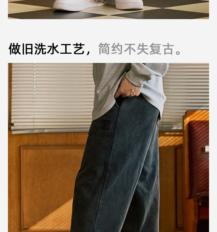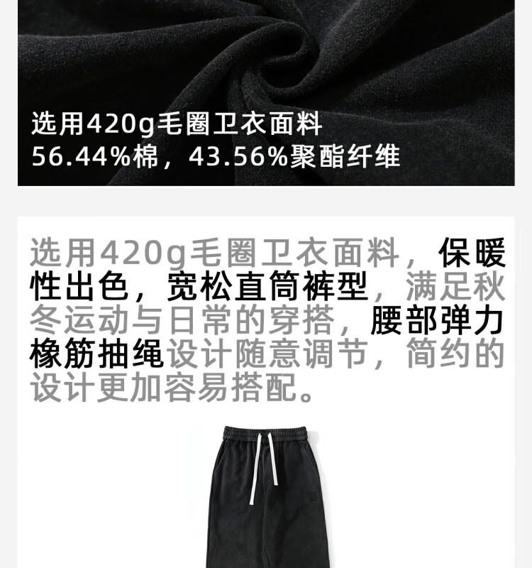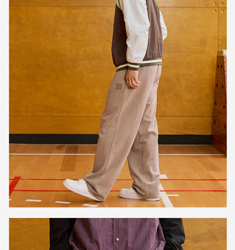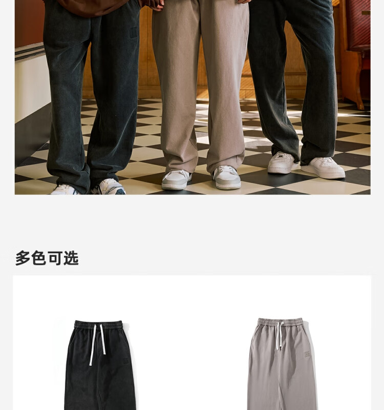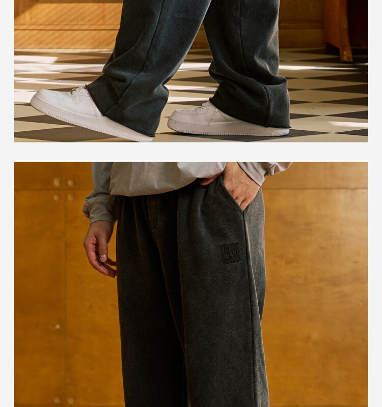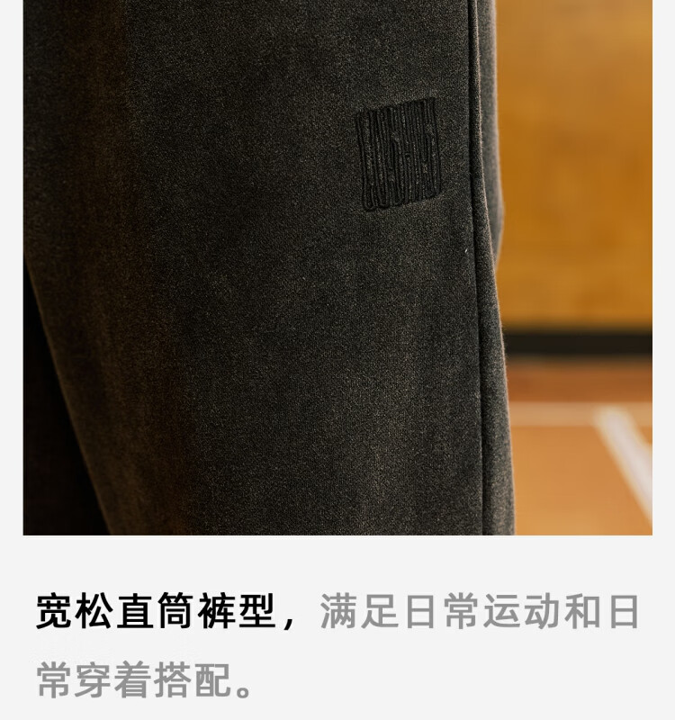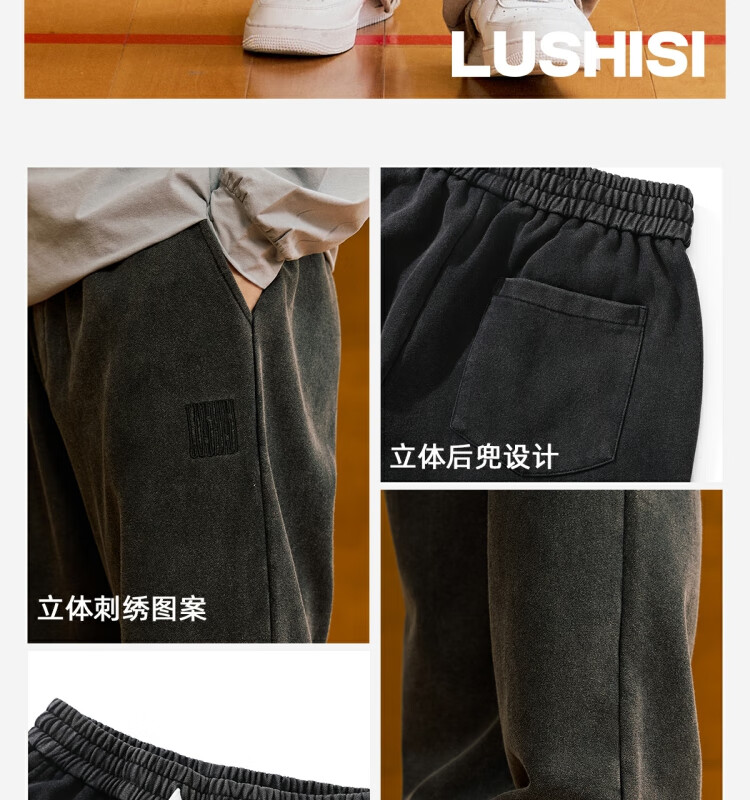 LUSHISI重山主题重磅毛圈做旧立体刺绣美式潮流复古宽松运动长裤