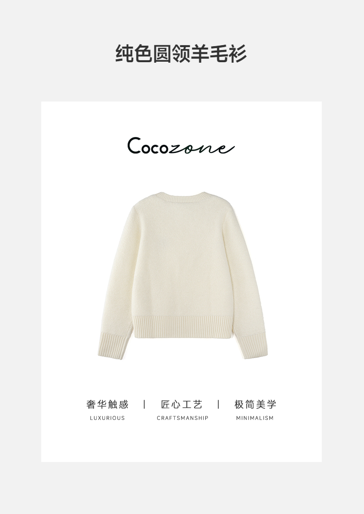 COCO ZONE 刘 一一“素颜毛衣”100羊毛纯色圆领毛织上衣CD1A1715