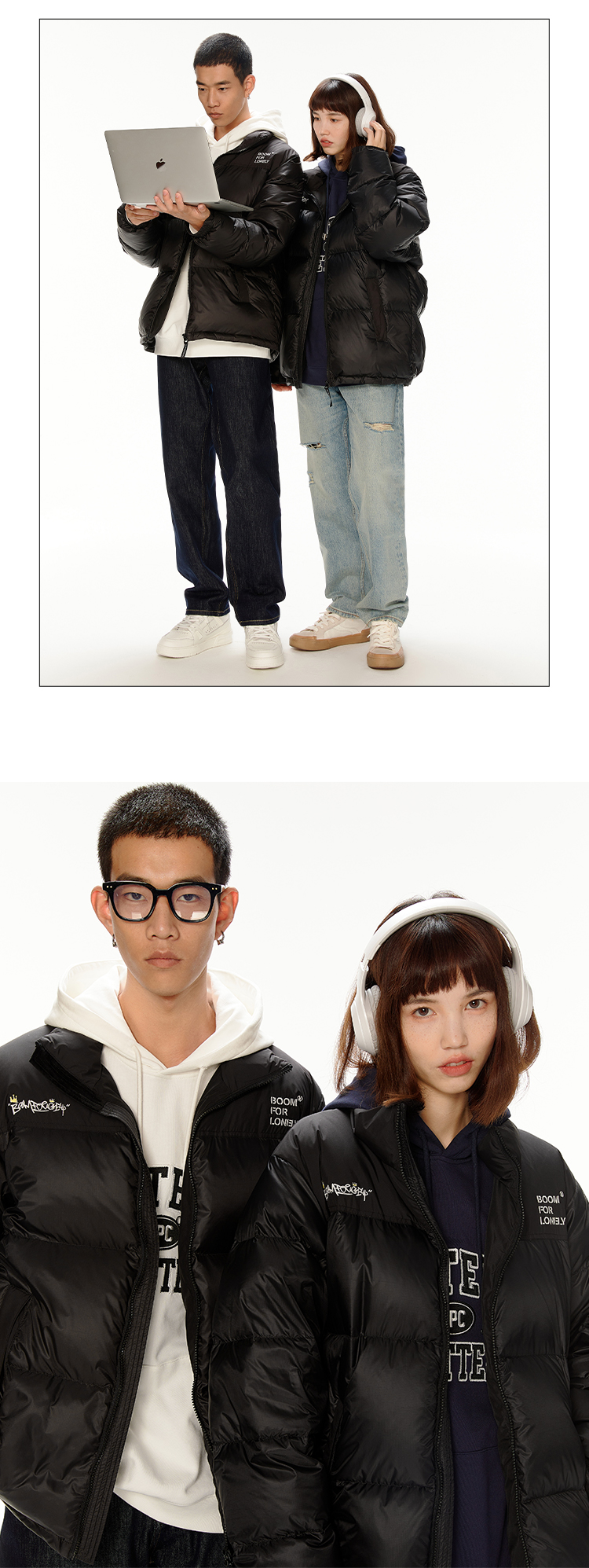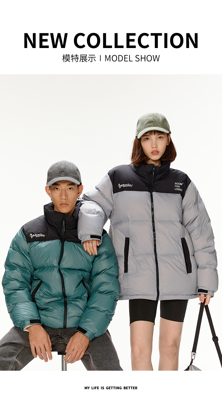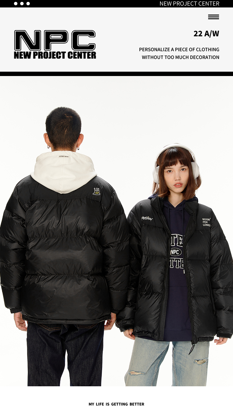 NPC潮牌胸前小皇冠绣花拼接撞色保暖休闲羽绒面包服情侣NP28DJ02