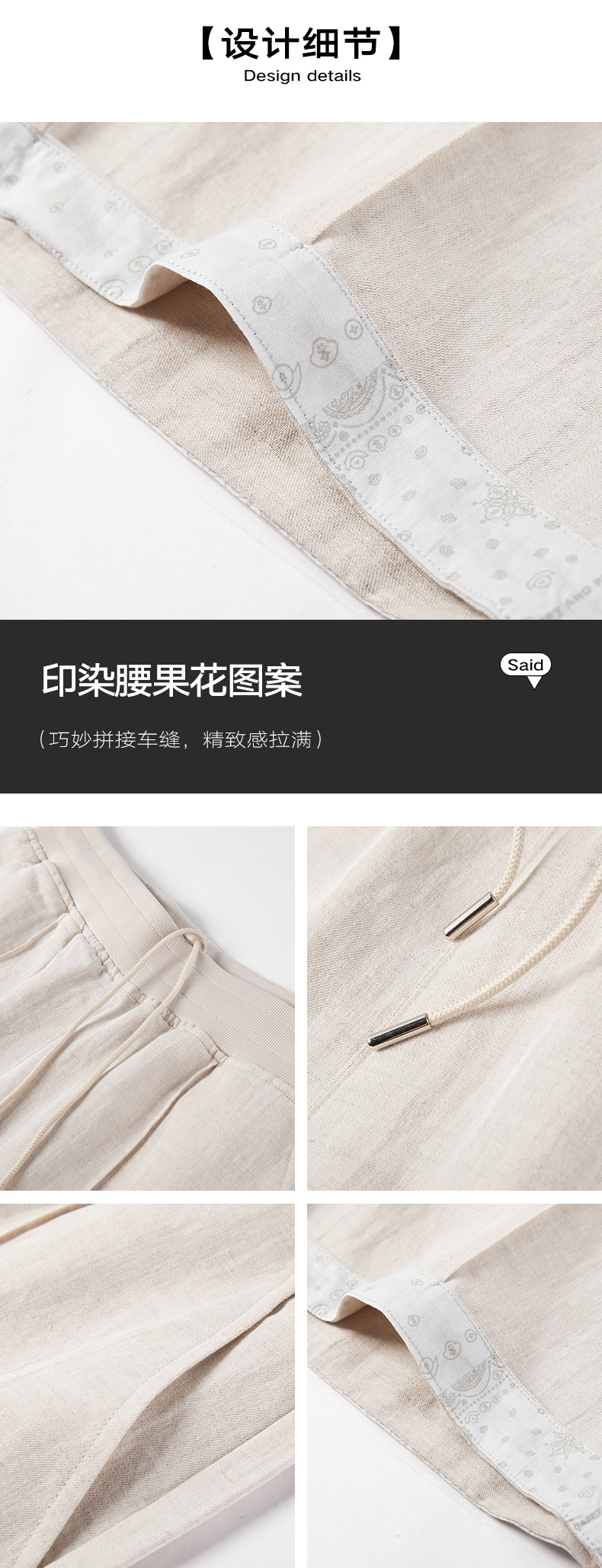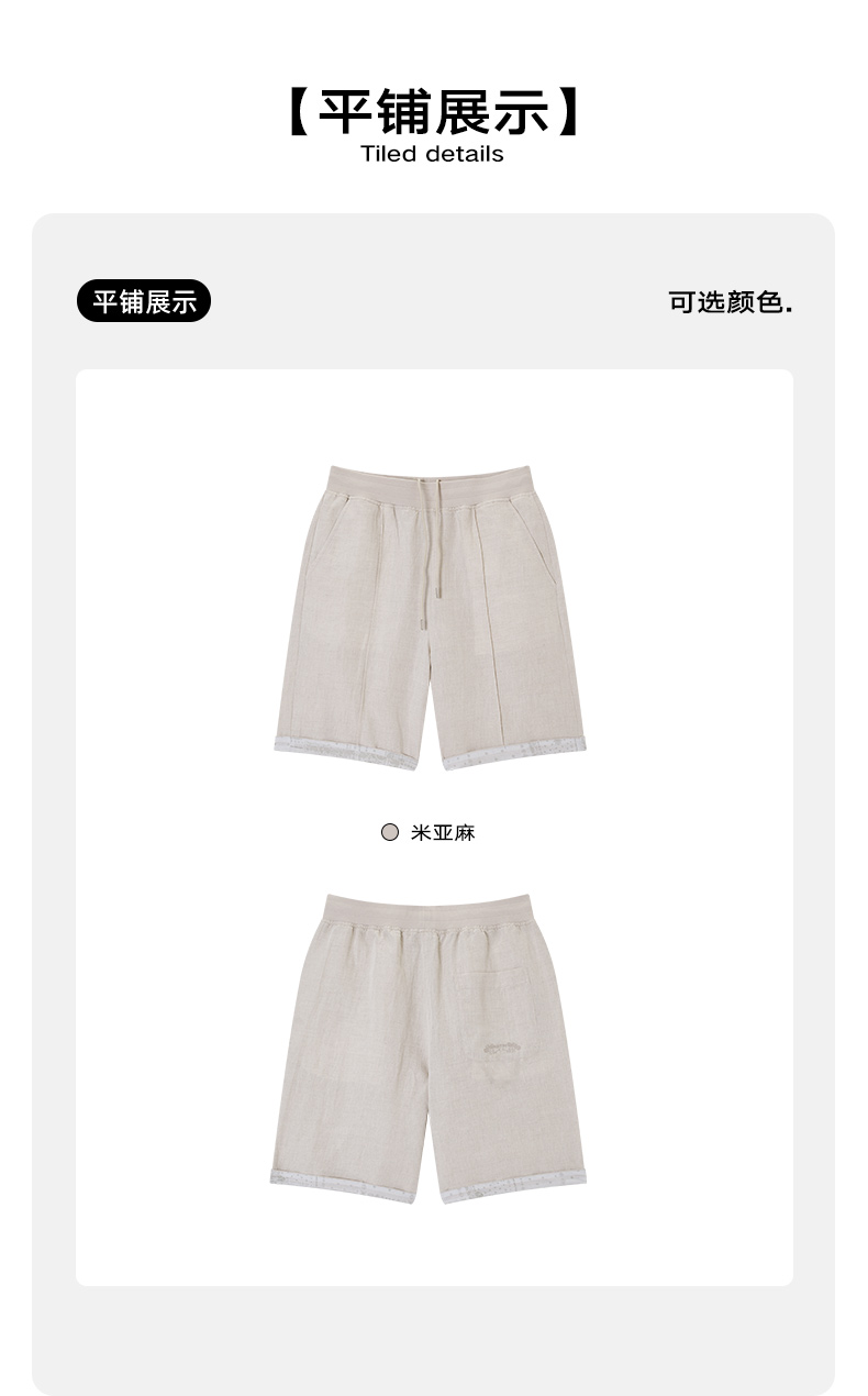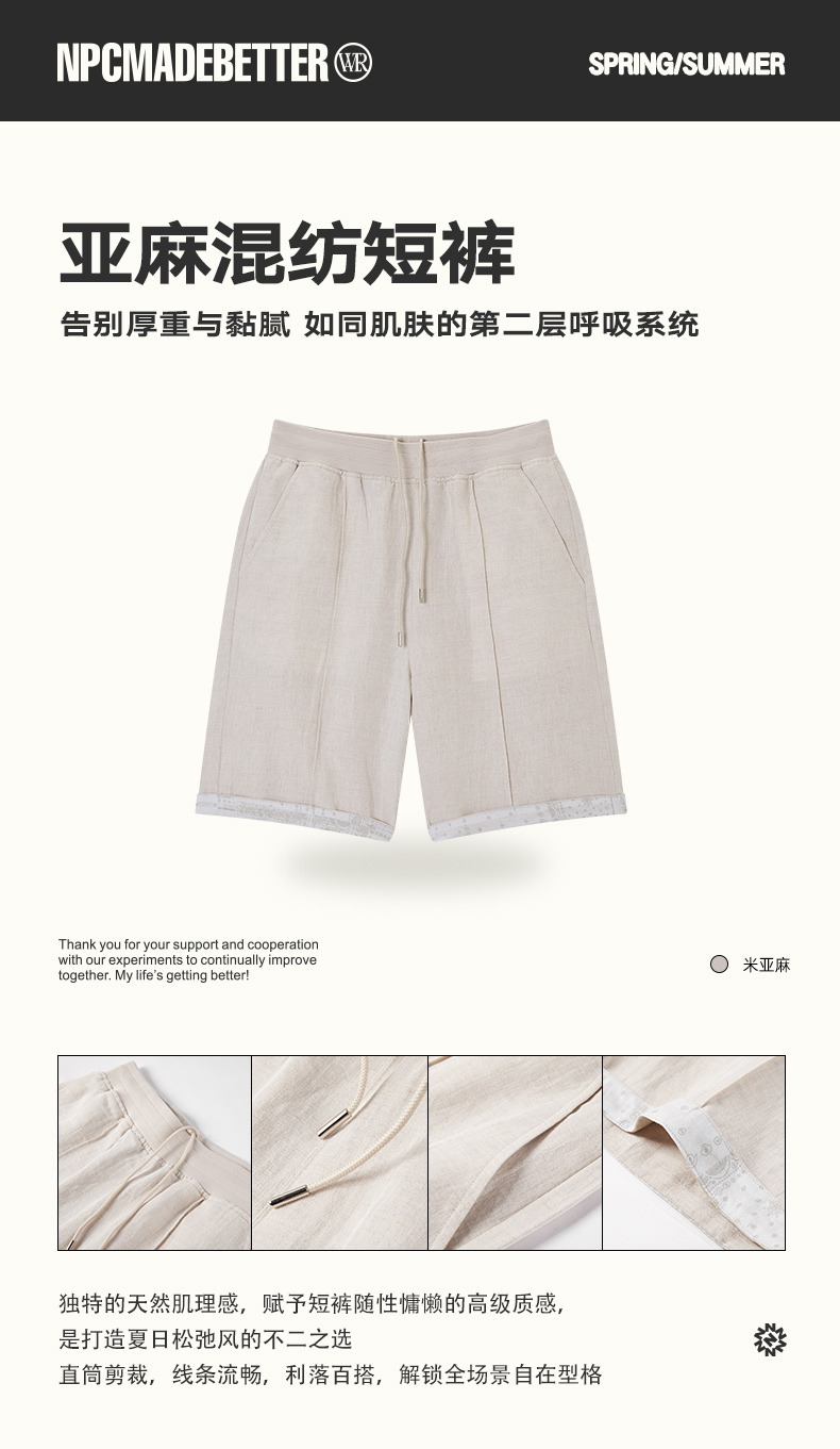 NPC潮牌亚麻短裤透气刺绣度假风休闲抽绳短裤男纯色时尚NP56SR79