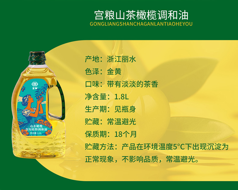 宫粮山茶橄榄调和油1.8L