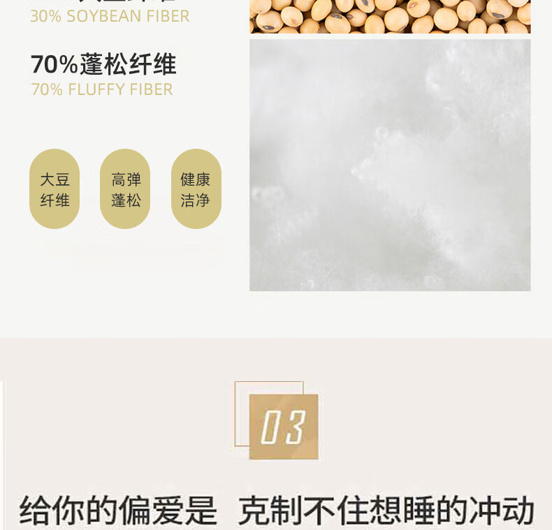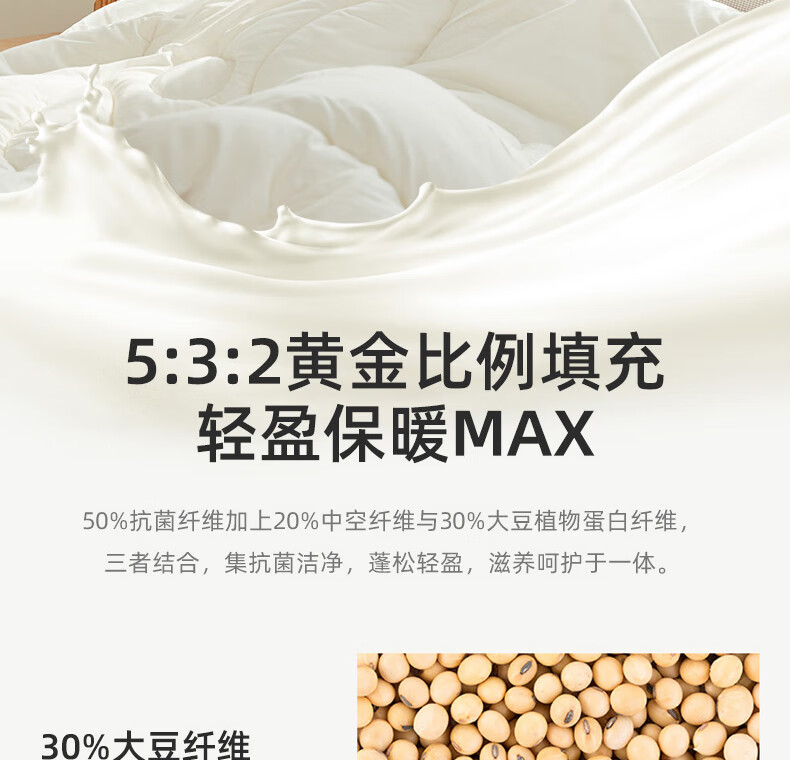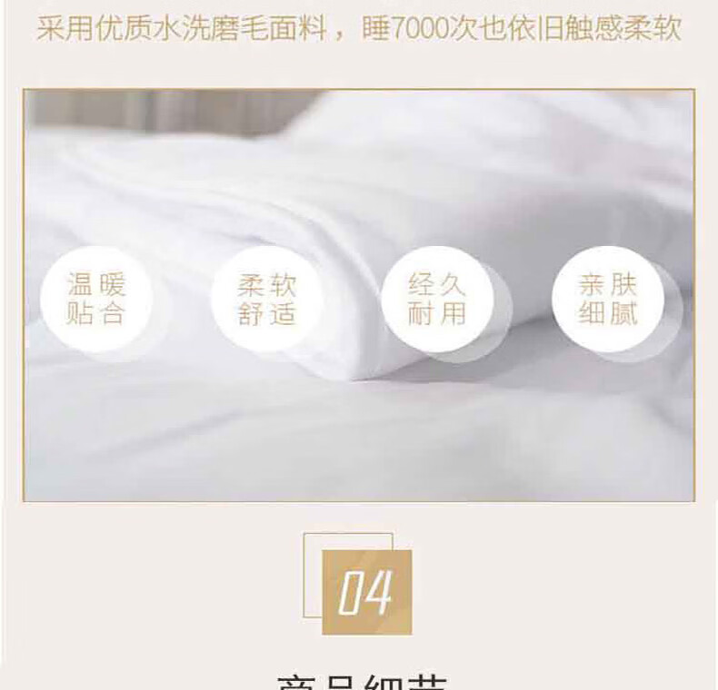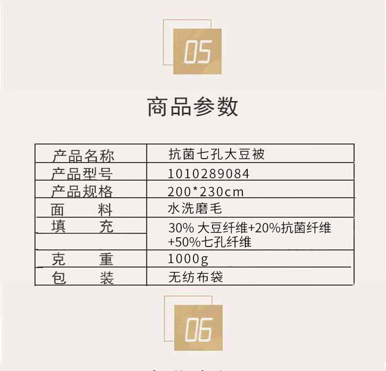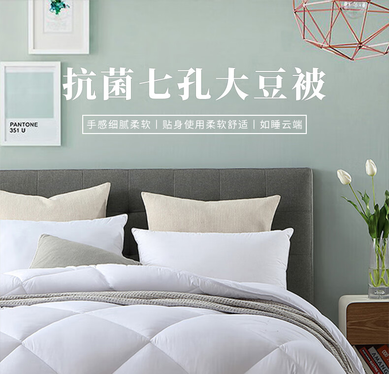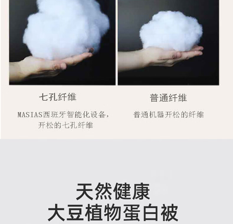 面料:水洗磨毛填充物:30%大豆纤维+20%抗菌纤维+50%七孔纤维