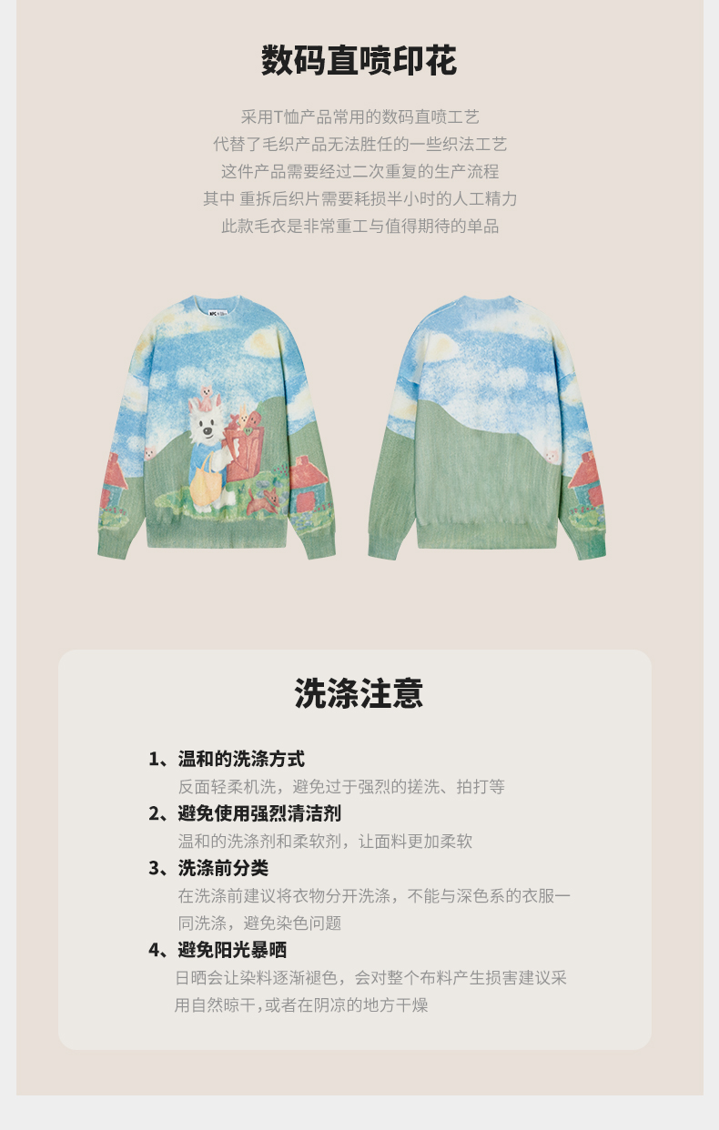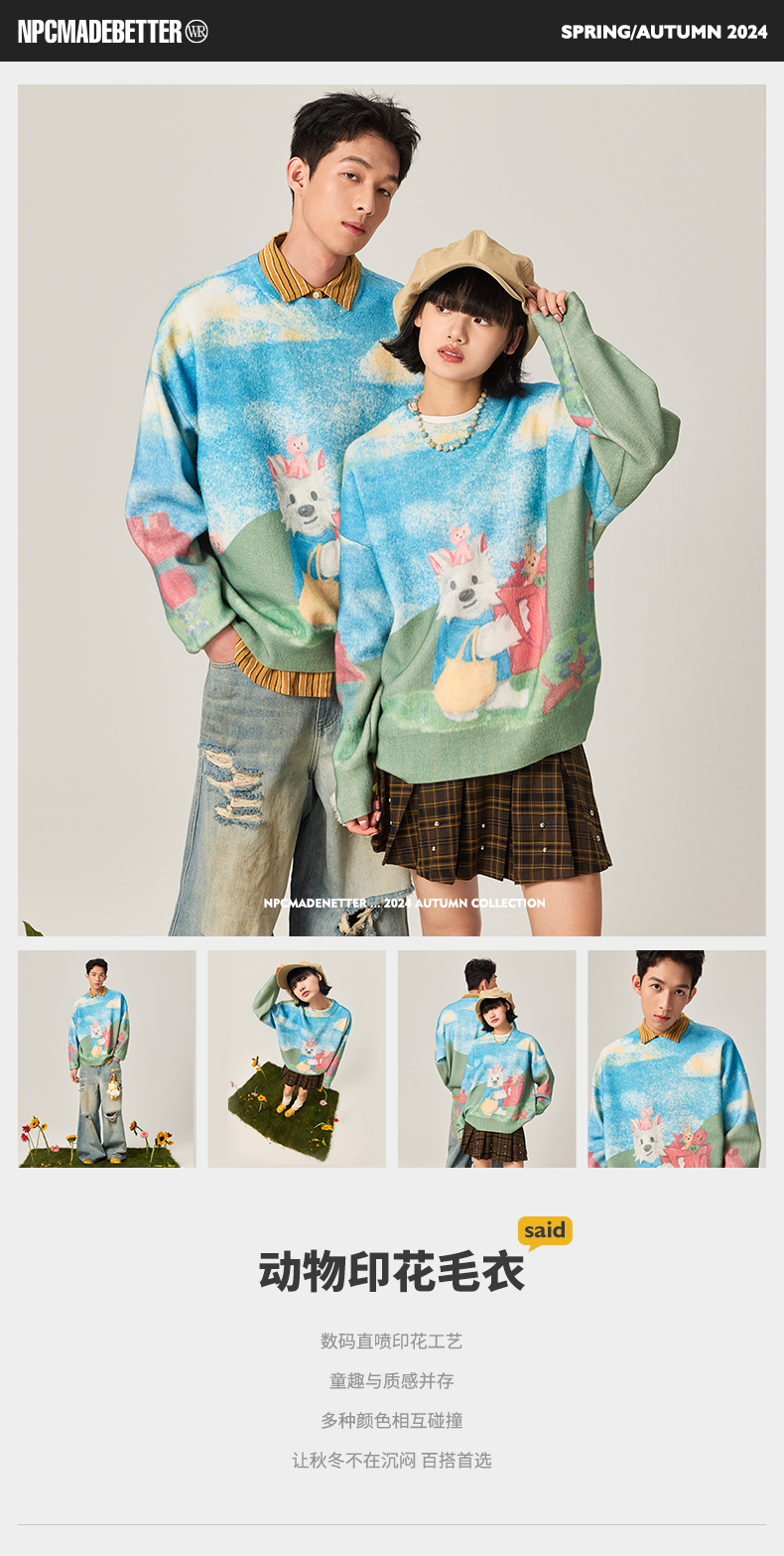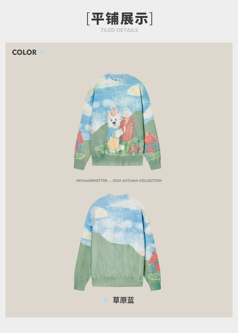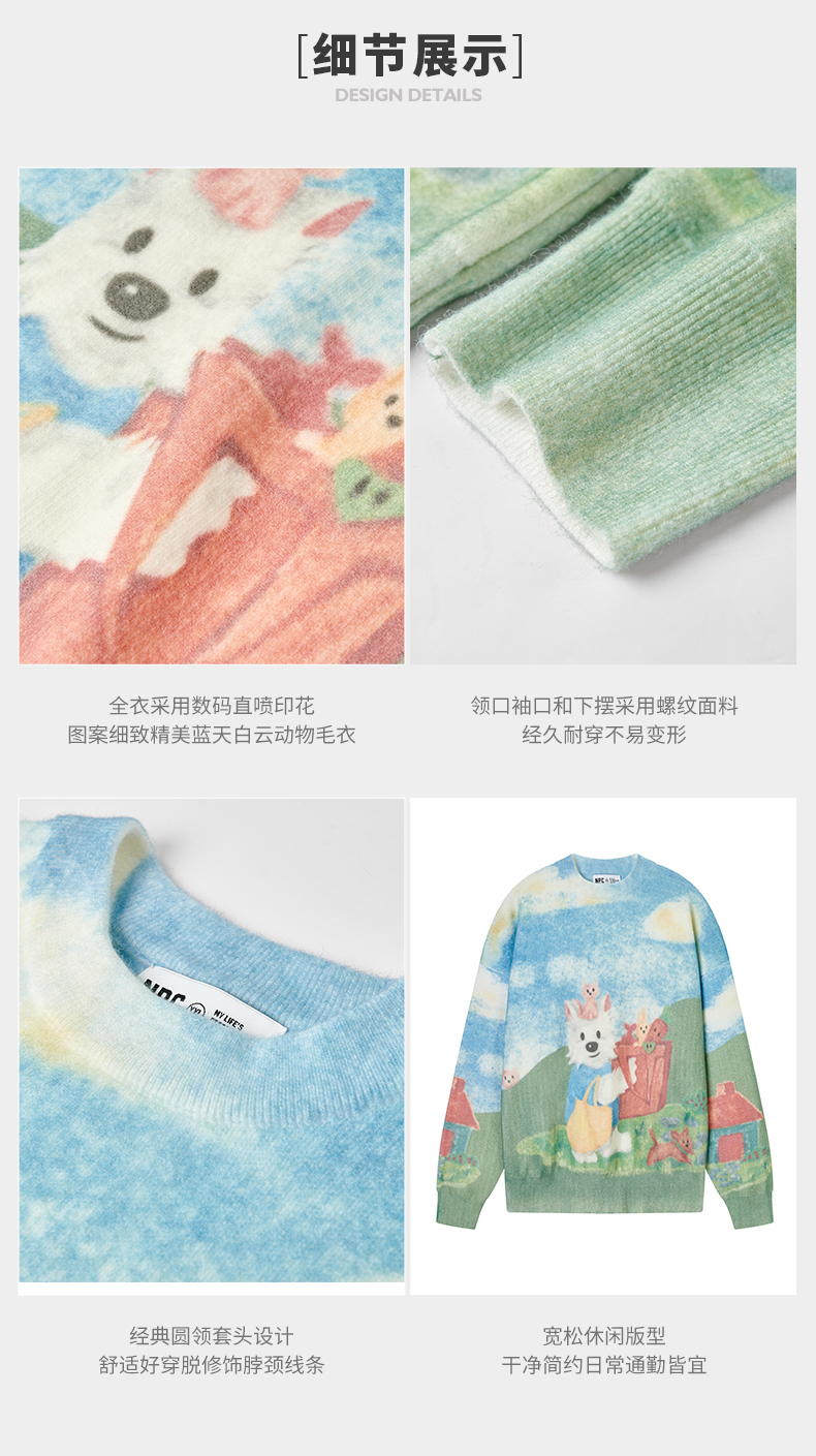 NPC潮牌CC购物系列彩色数码直喷印花蓝天白云毛衣男童趣CC47SW25