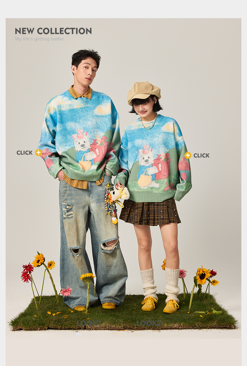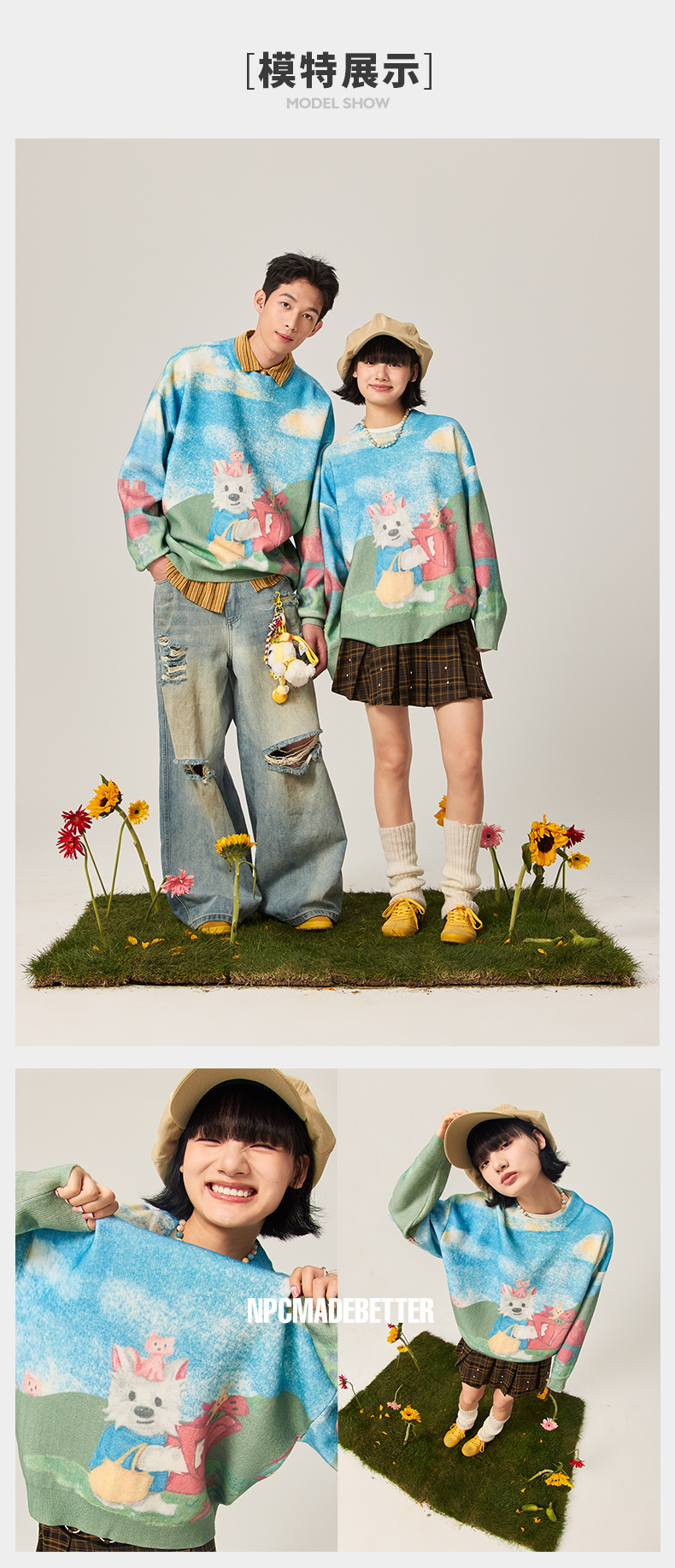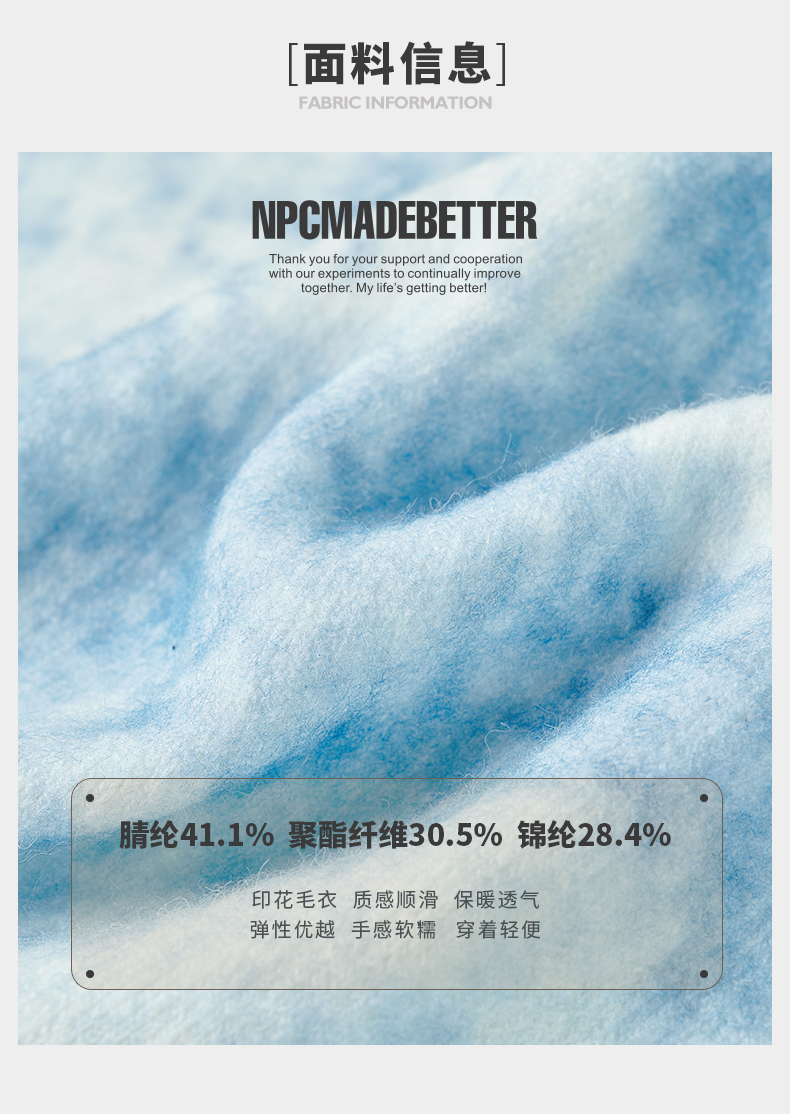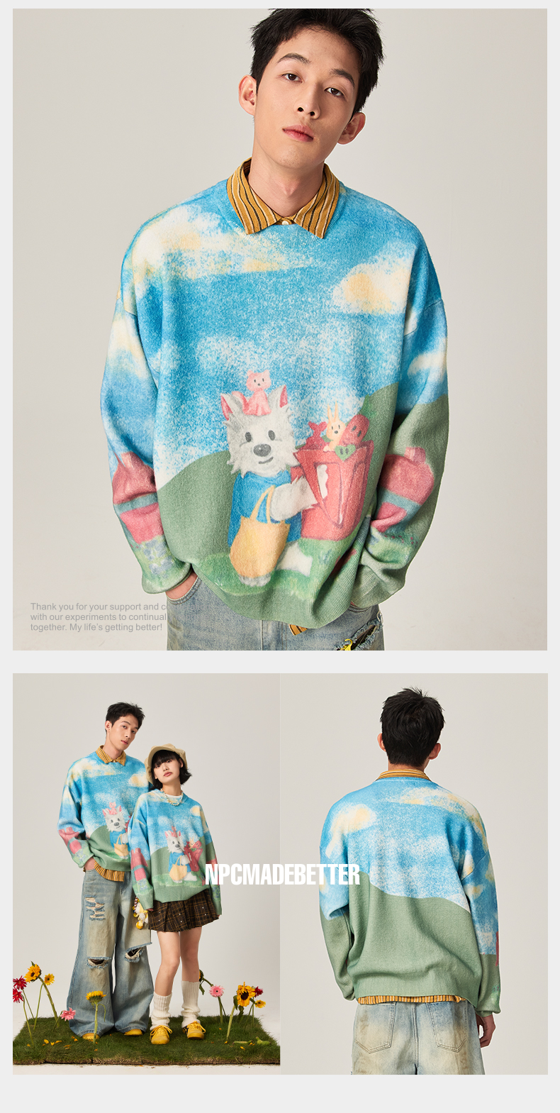 NPC潮牌CC购物系列彩色数码直喷印花蓝天白云毛衣男童趣CC47SW25