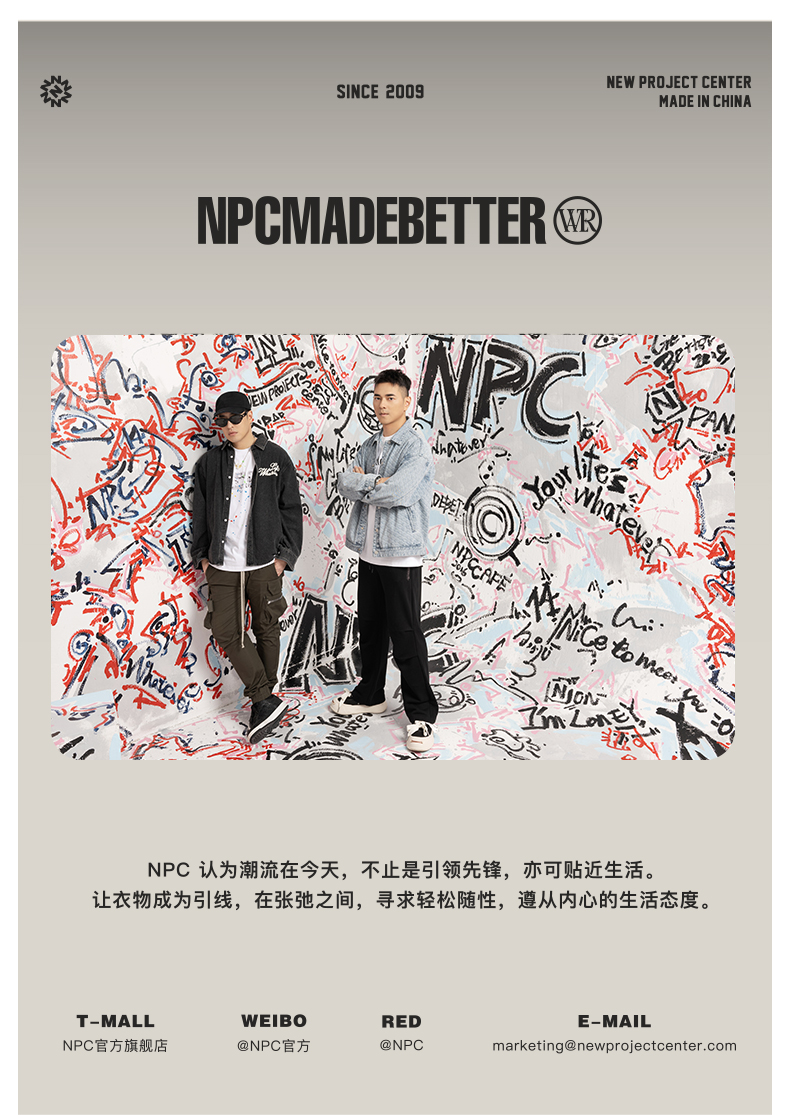 NPC潮牌复古重工水墨印花翻领牛仔外套夹克男潮流春秋NP41DC56