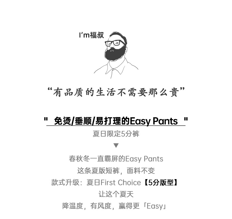 工装优选 美式休闲Easypants短裤免烫抗皱垂感宽松直筒五分裤男夏