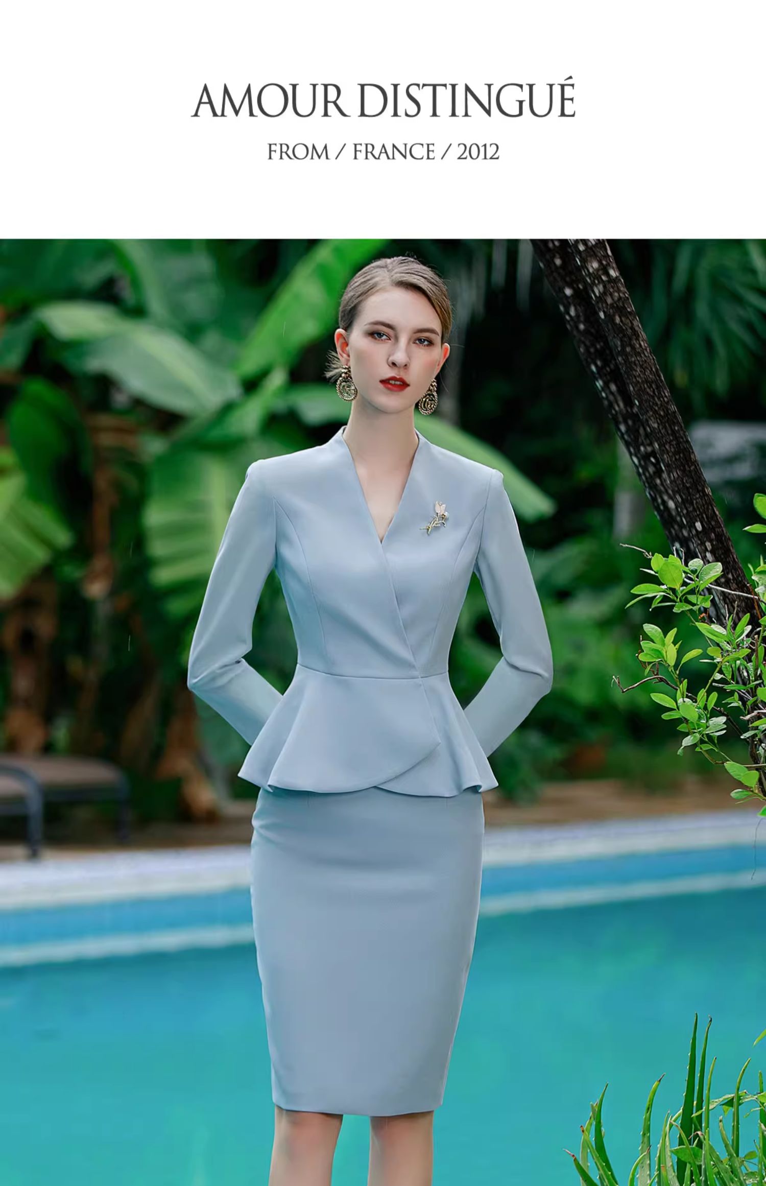 AD浅色职业装气质女神范西装套装女高端酒店工作服长袖西服两件套
