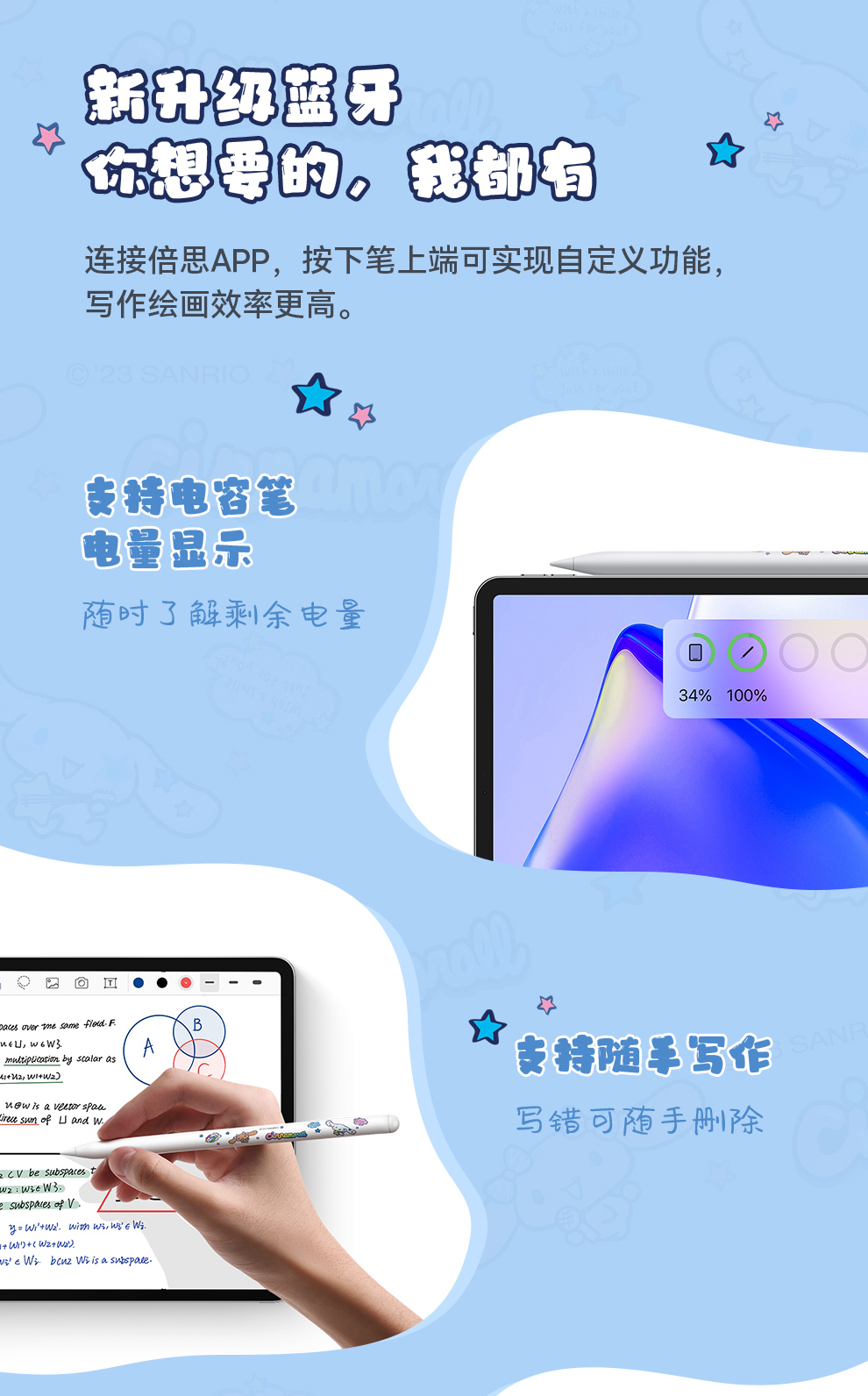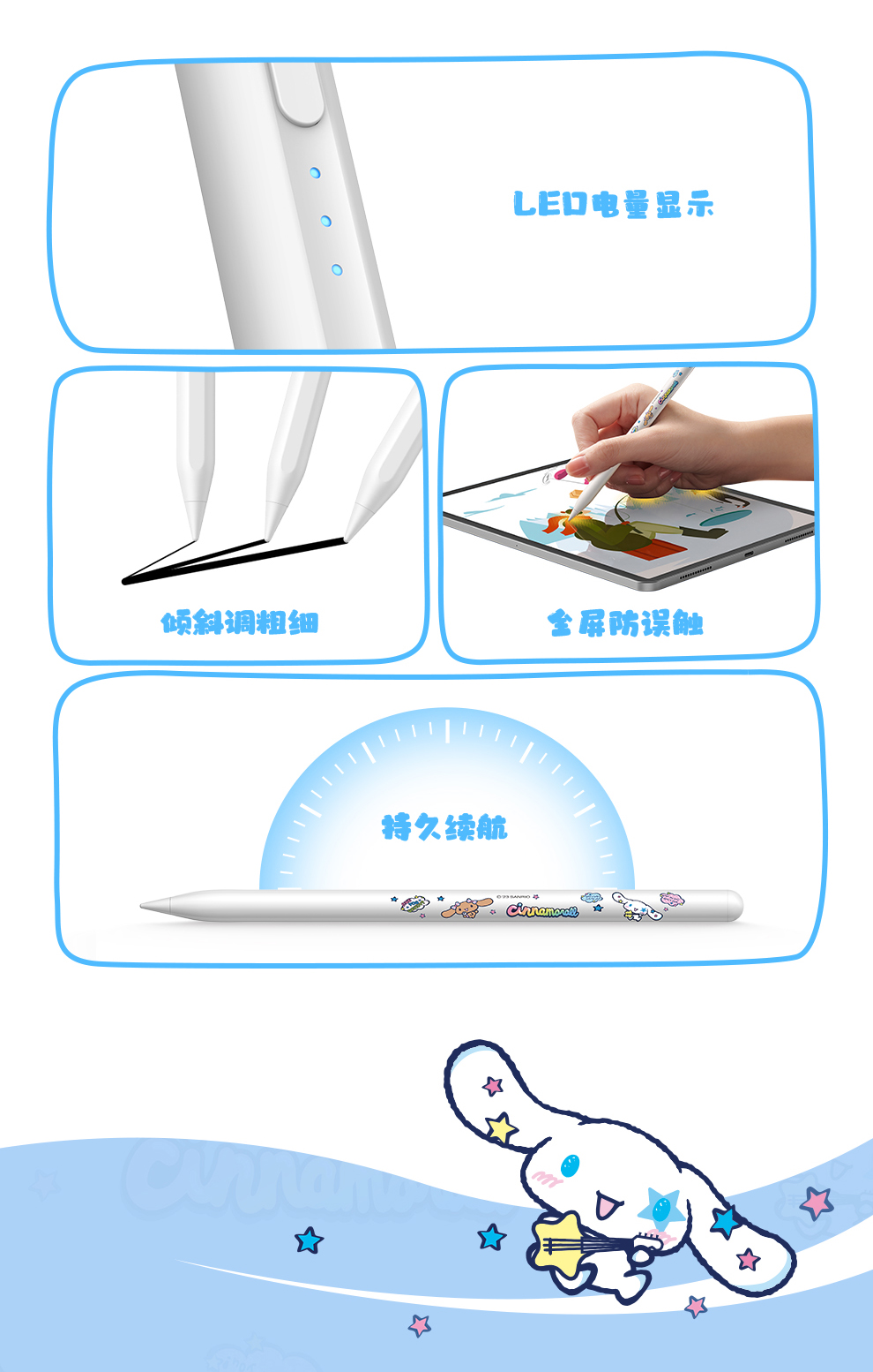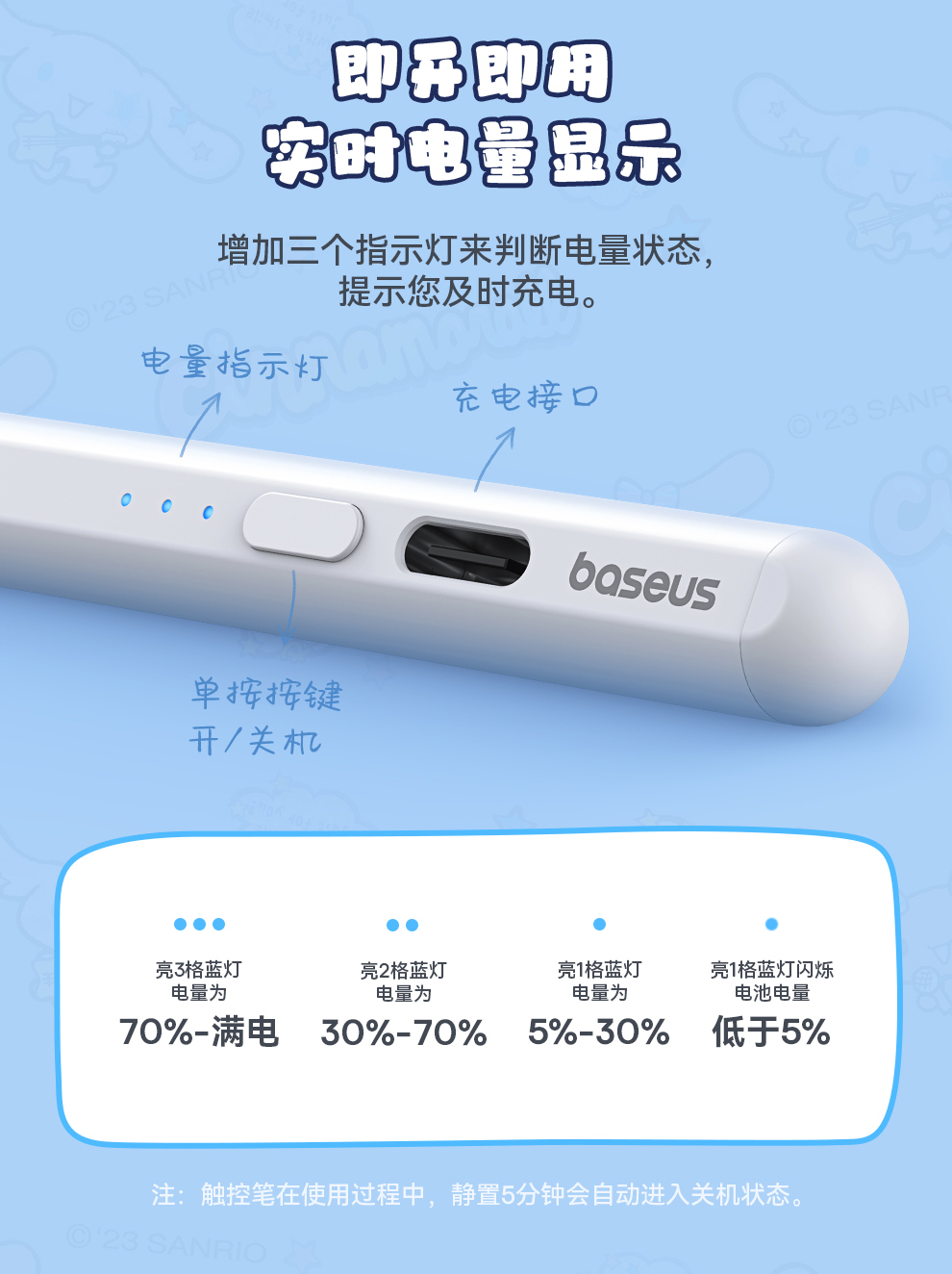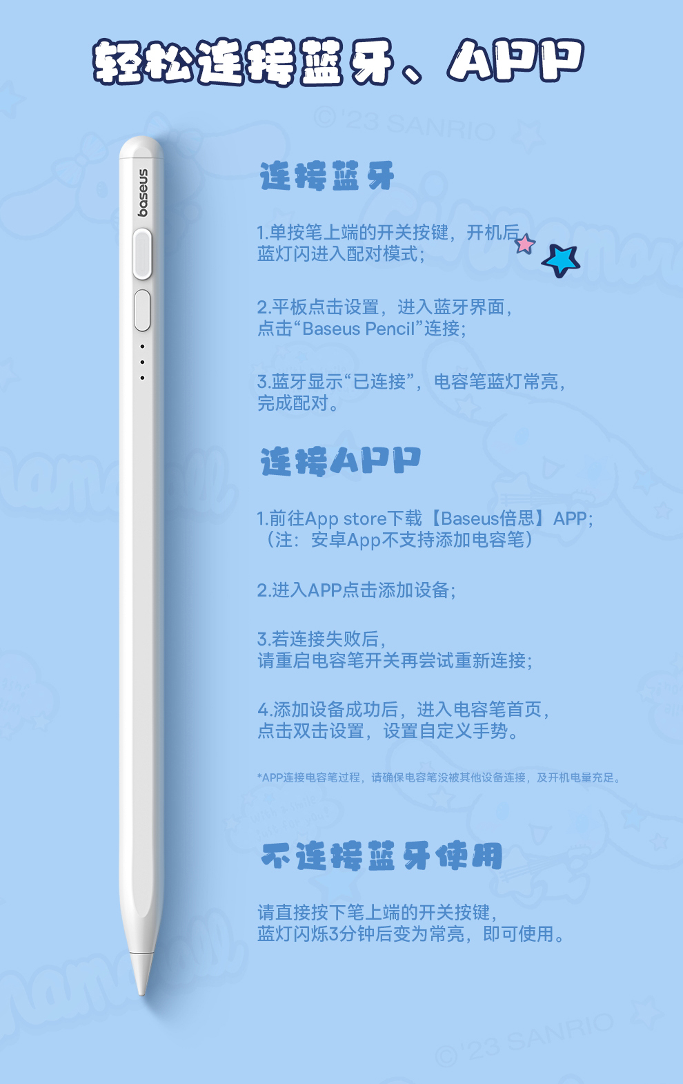 倍思 笔畅系列 2 灯显电容手写笔 主动蓝牙版 三丽鸥正版授权 皓月白