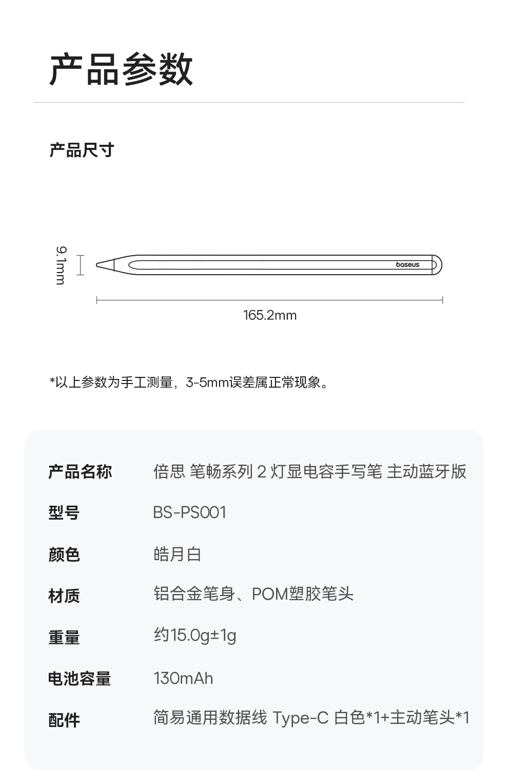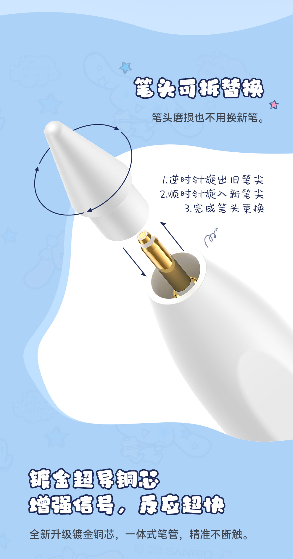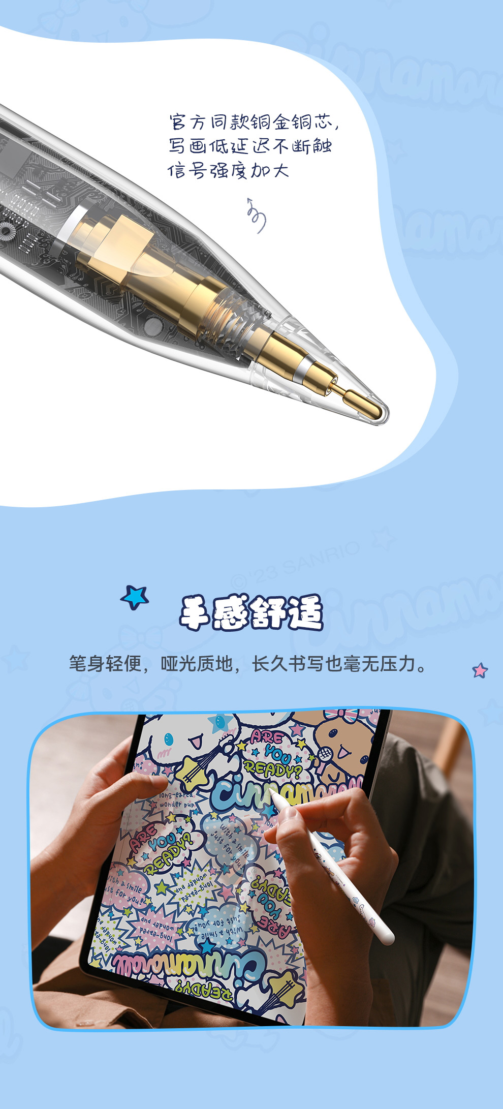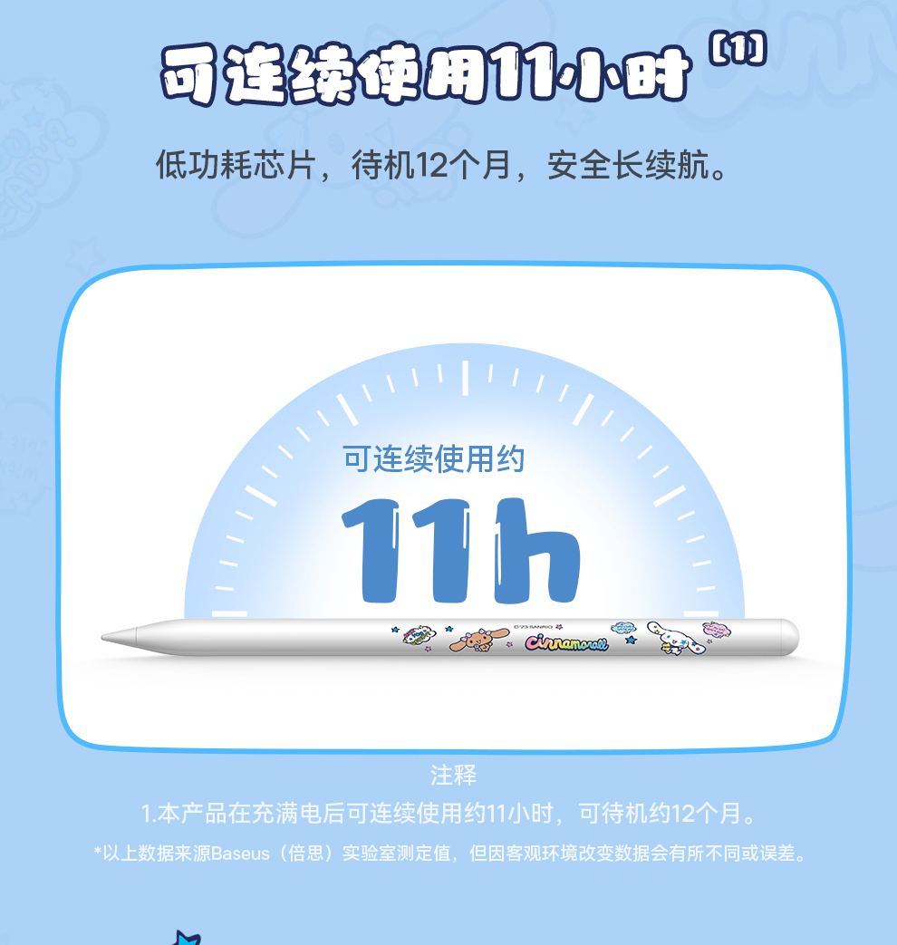 倍思 笔畅系列 2 灯显电容手写笔 主动蓝牙版 三丽鸥正版授权 皓月白