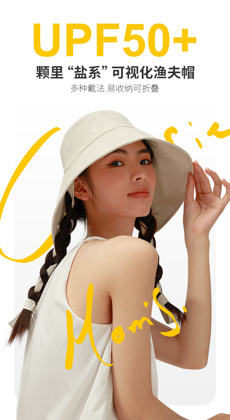 【黎贝卡】CMS 颗里 盐系渔夫帽大帽檐遮脸防晒帽防紫外线遮阳时尚太阳帽