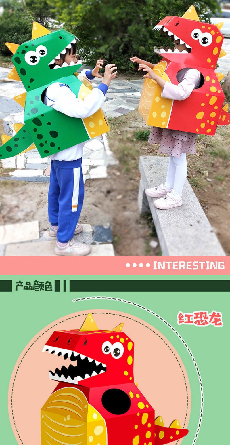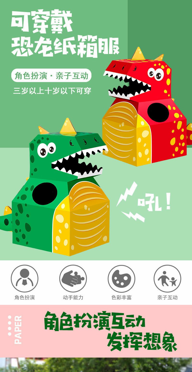 【48小时发货】纸箱恐龙玩具可穿创意DIY模型手工拍摄幼儿童玩具圣诞节道具装扮