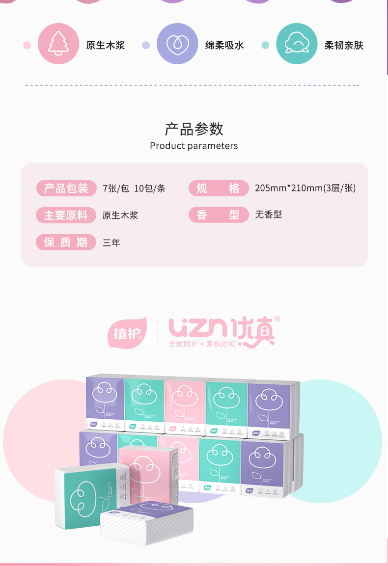 植护 10包手帕纸 抽纸 面巾纸餐巾纸便携式家用擦手纸三层面巾纸7张x3层x10包/袋