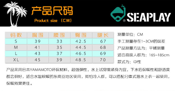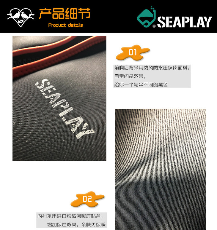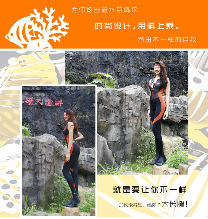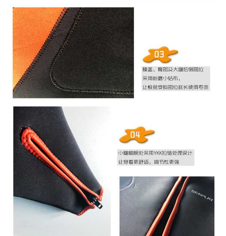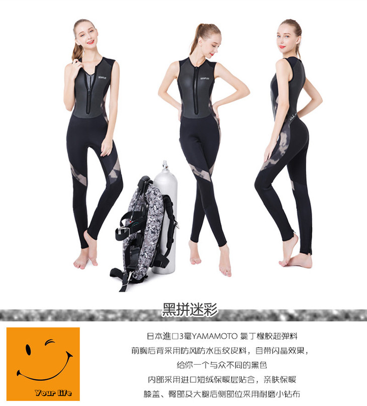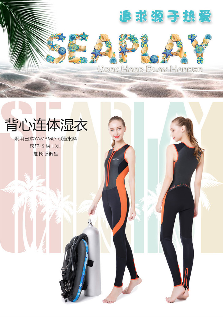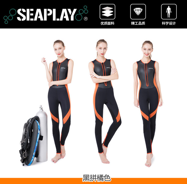 【装备】SEAPLAY 背心连体潜水服 湿衣 黑拼橘色女款 黑拼迷彩女款