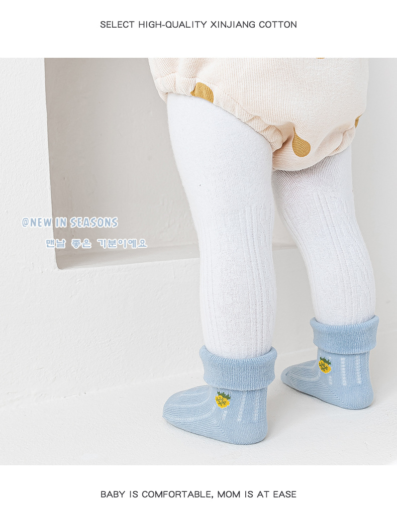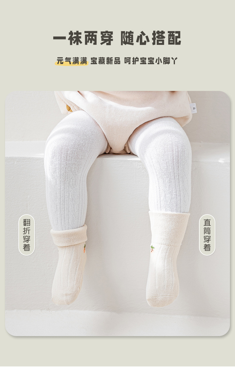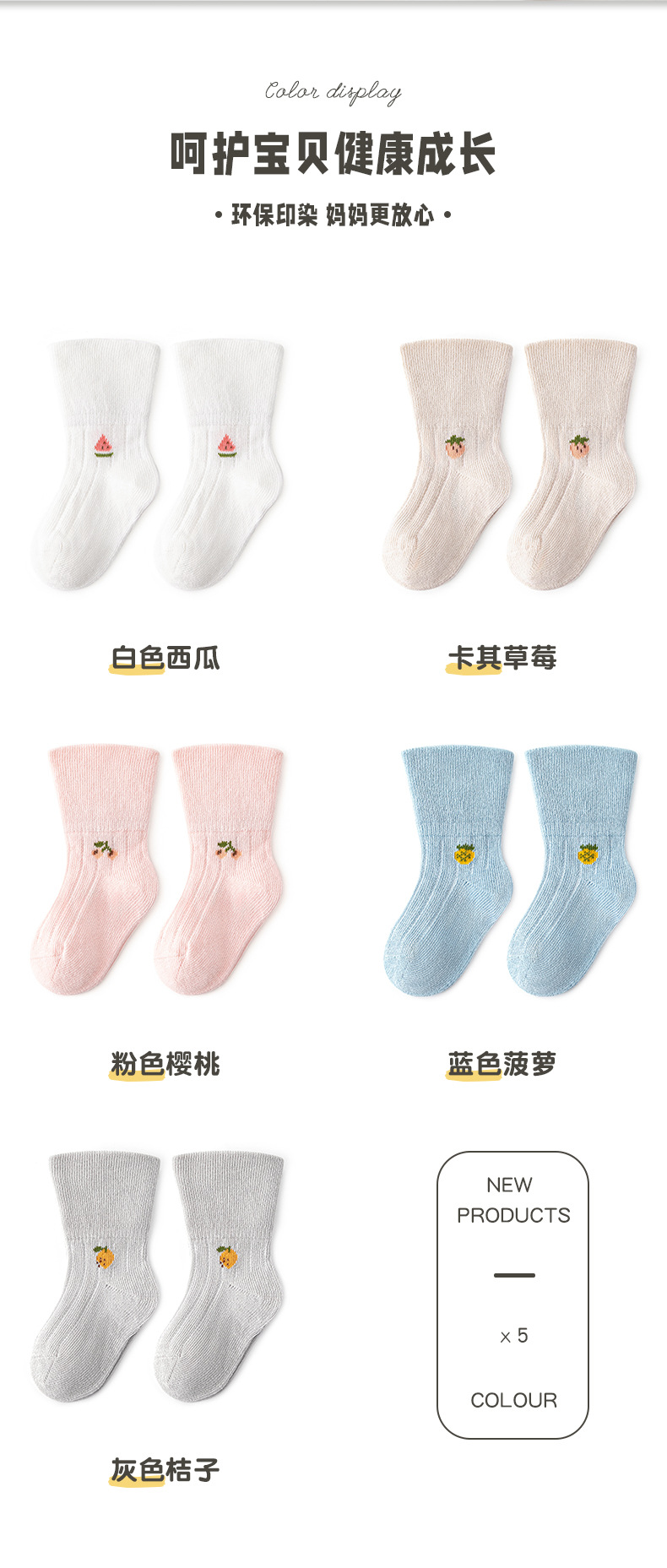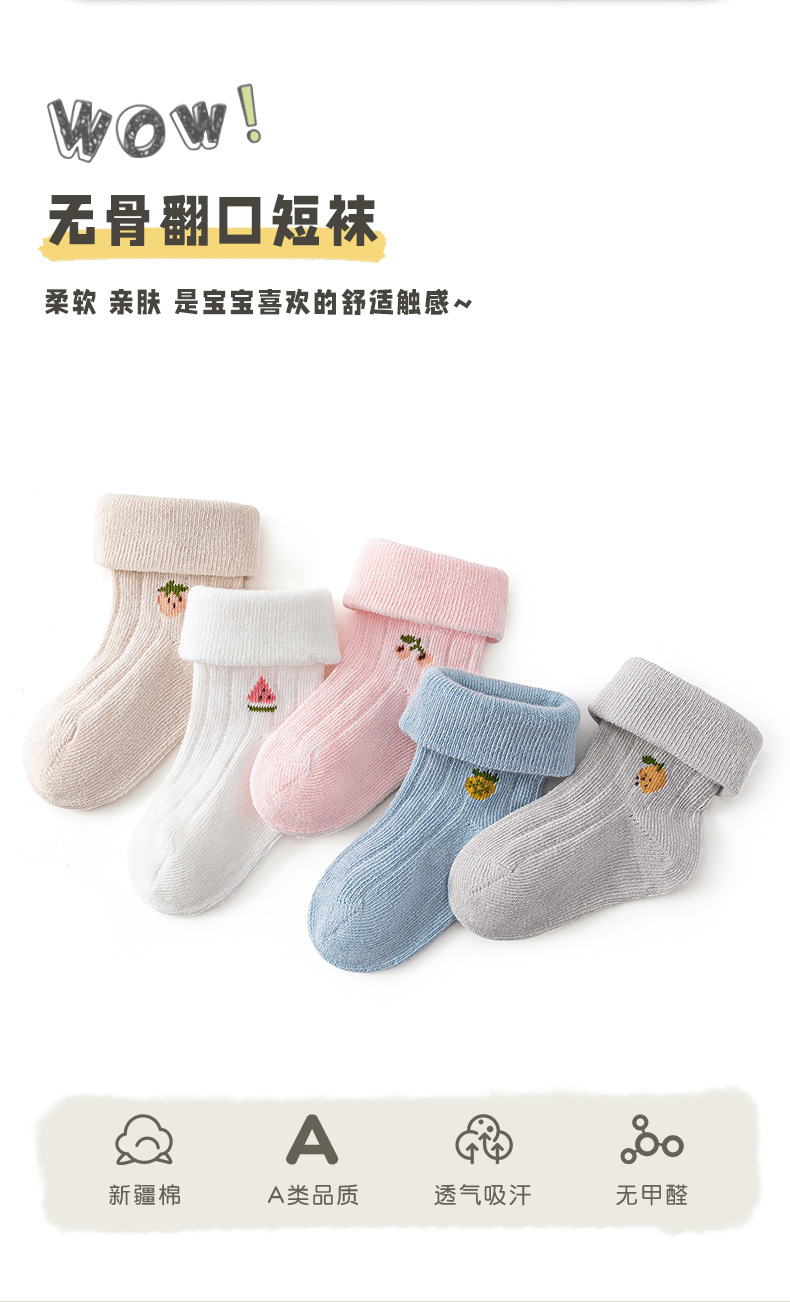 【3双装 一袜两穿 元气满满】23新款卡通宝宝两穿反折袜新生婴幼儿童无骨袜子水果翻边松口短袜