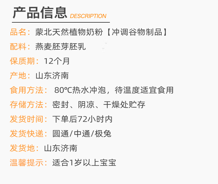 蒙北 天然植物奶粉 600g/罐【30g*20袋】