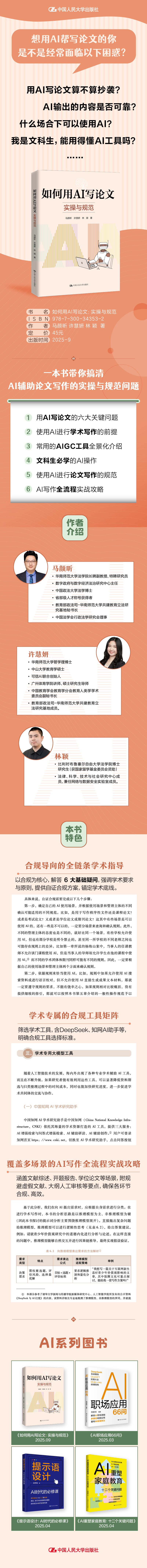 在学术写作中,人工智能已经不是能不能用的问题,而是应当如何恰当、合规地应用以实现学术研究的核心目标。这正是本书的主旨所在。在规范建构层面,本书研究探讨了人工智能时代的学术规范与伦理的发展趋势,即:在人工智能时代,哪些学术价值应当被坚持,哪些规范又应该进行相应调整。在实践操作层面,从讨论 AI“有没有用”,到 AI“能不能用”,最后回到 AI“怎么用”,本书为读者呈现了人工智能时代如何合规使用 AI撰写论文的基本框架与操作指南,提供了合规写作的理论指导及操作路径。
