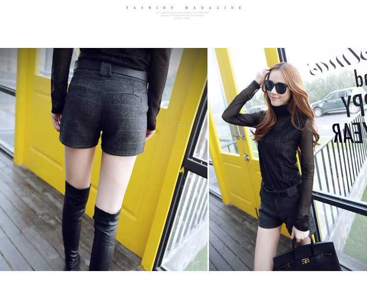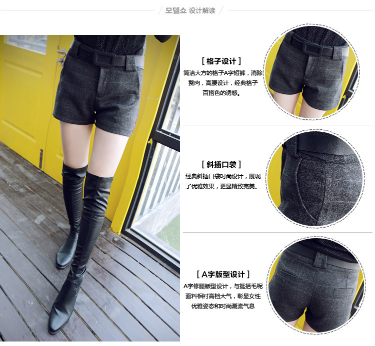 【服饰鞋包】秋冬韩版外穿格子毛呢A字短裤显瘦新款大码靴裤女短款呢子裤