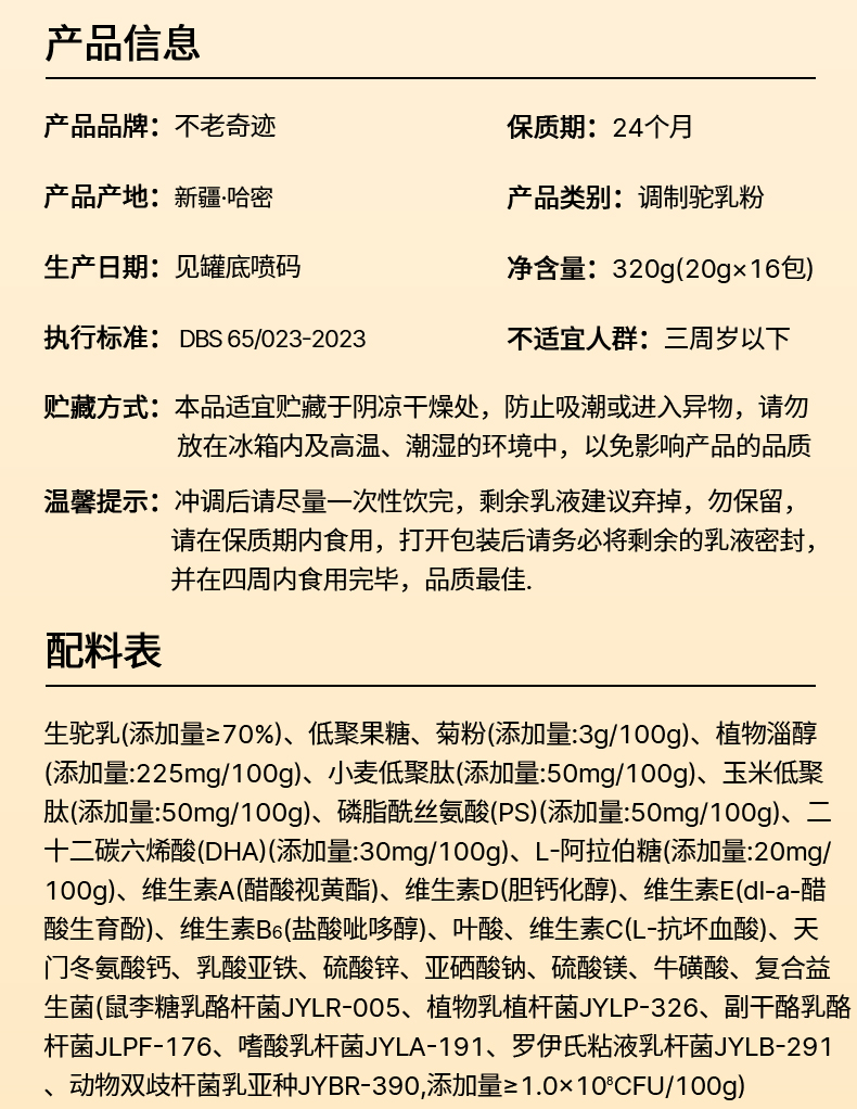 大杨会员专享~ 代购益生菌配方驼奶 320g 新鲜初乳