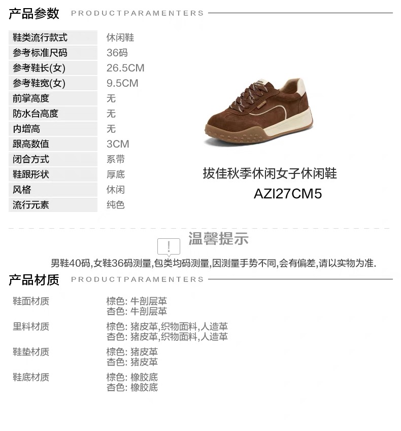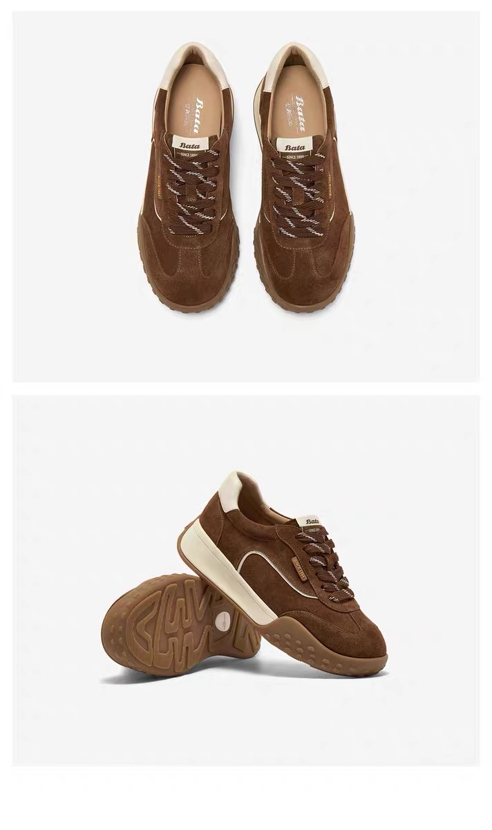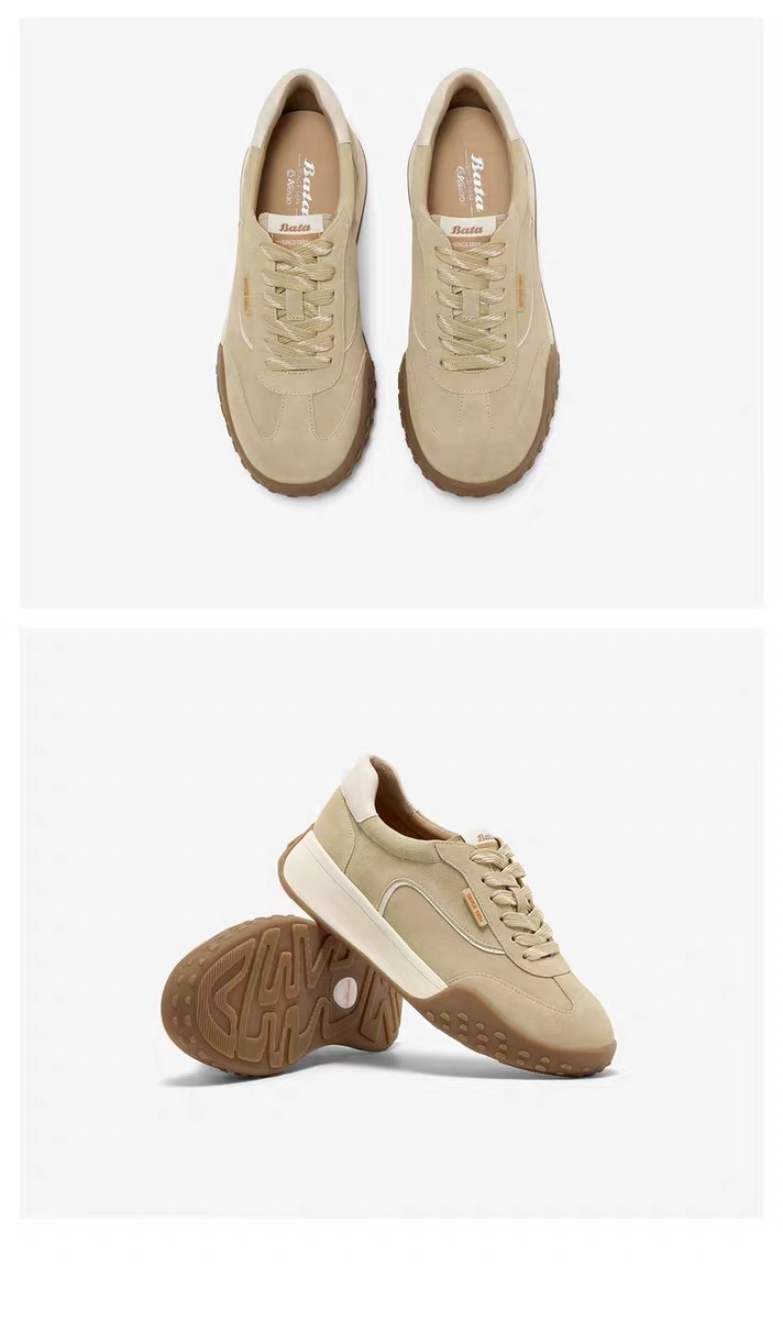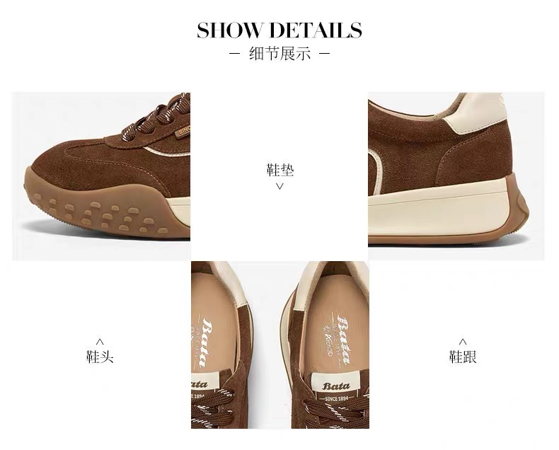 【云粉节】 【拔佳】BF楼Bata休闲鞋女2025秋款牛剖皮厚底通勤百搭运动鞋AZI27CM5 吊牌价999活动价599