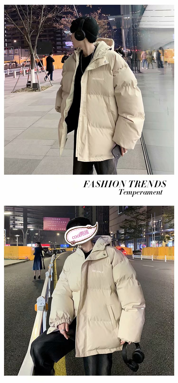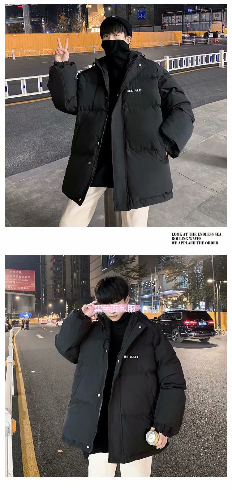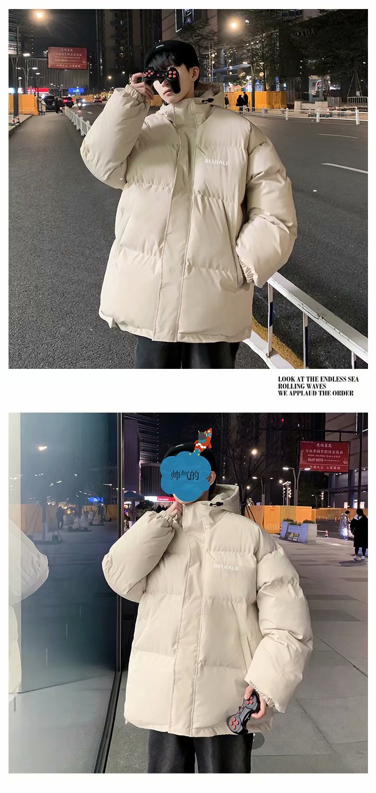 男士棉衣冬季加厚潮流棉袄棉服连帽保暖外套宽松面包服my89