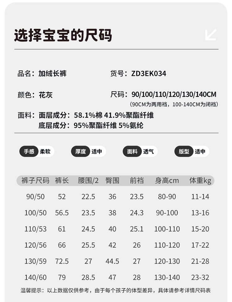 迪士尼女童秋冬加绒长裤ZD3EK034