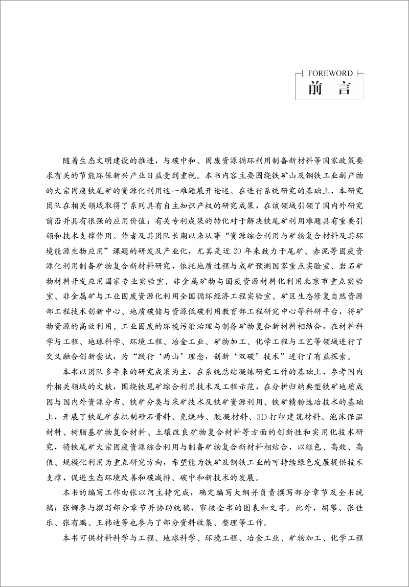 本 书 以 铁 尾 矿 资 源 综 合 利 用 及 矿 物 复 合 新 材 料 为 特 色 , 系 统 地 介 绍 了 作 者 团 队 多 年 来