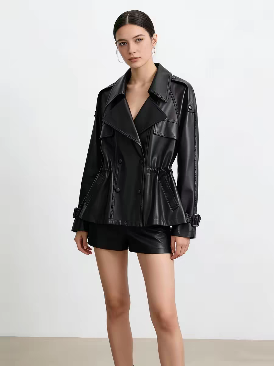 酷飒版型,经典翻领+双排扣设计,自带复古滤镜,轻松塑造利落干练的气场。