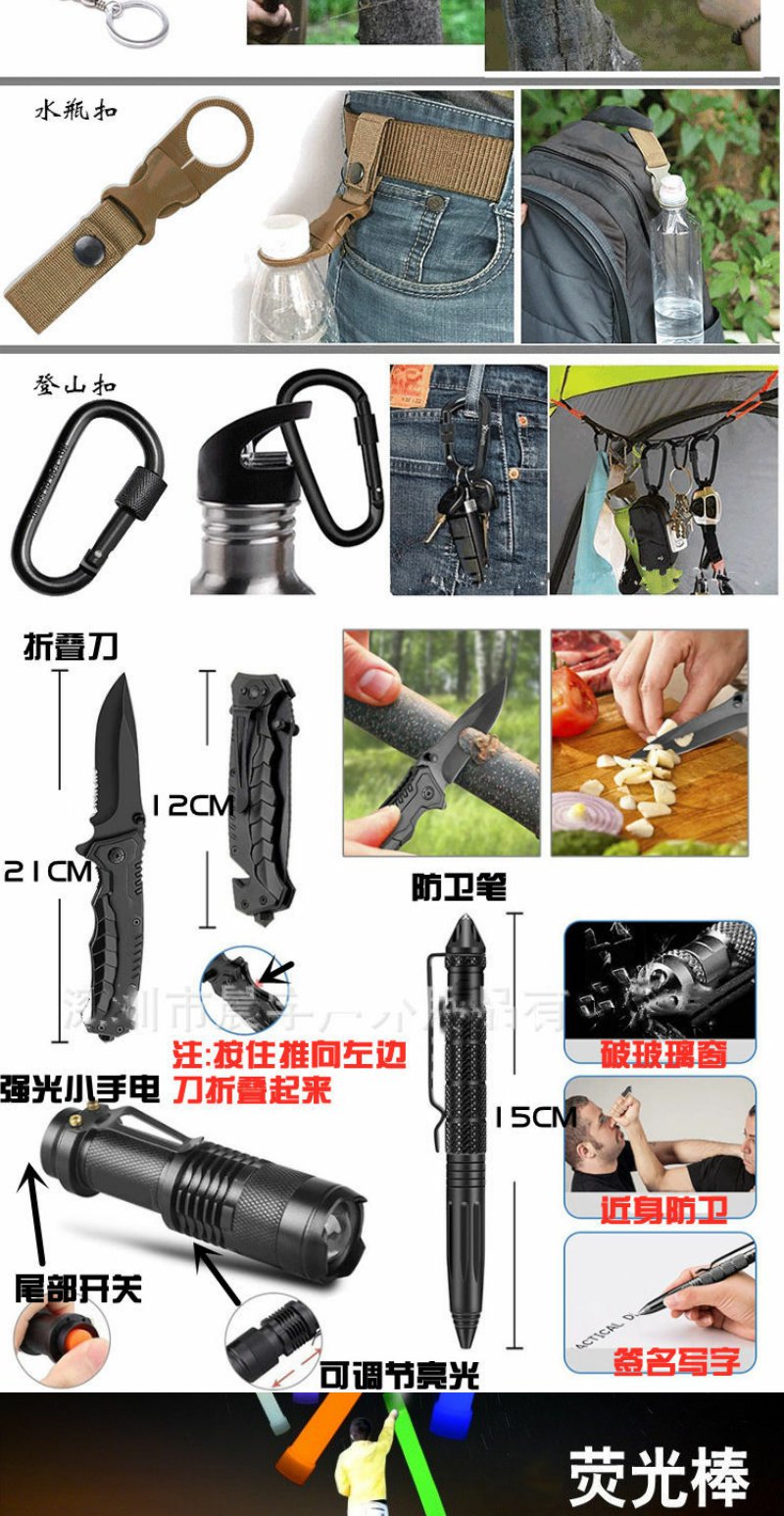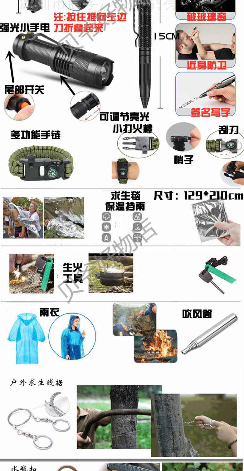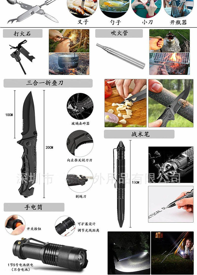 D户外野营求生工具套装多功能生存旅行露营登山应急用品 SOS急救