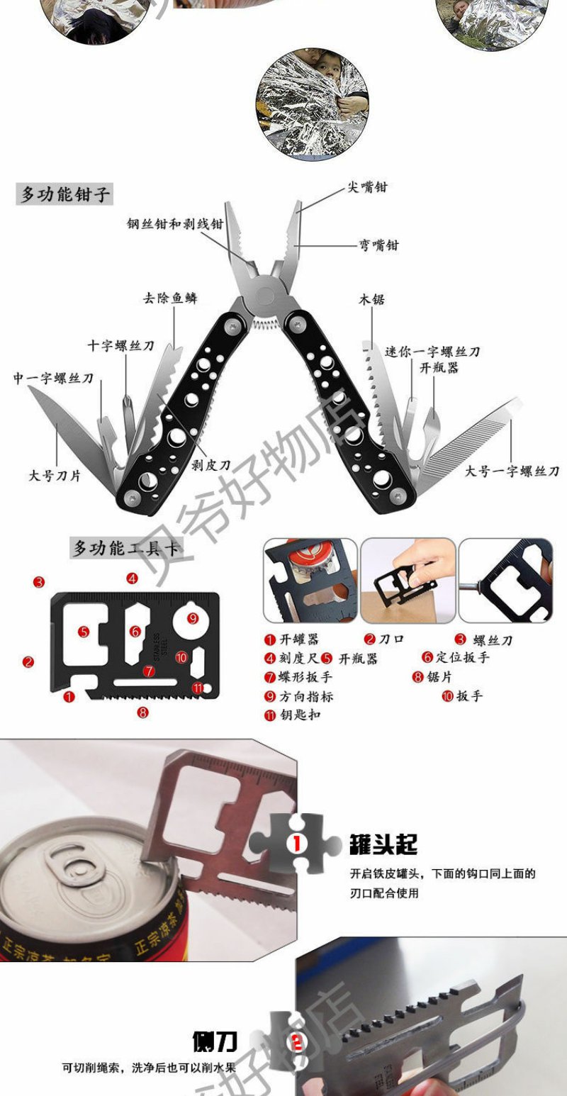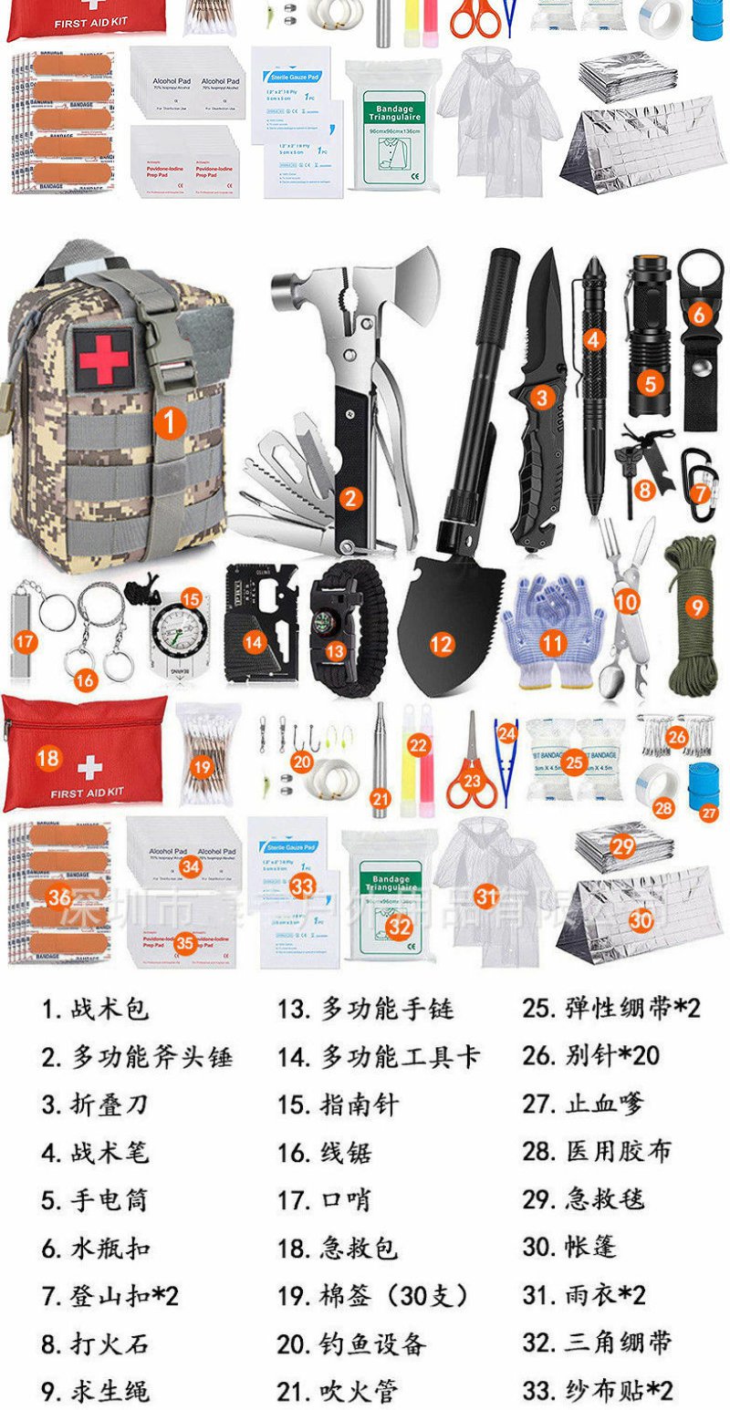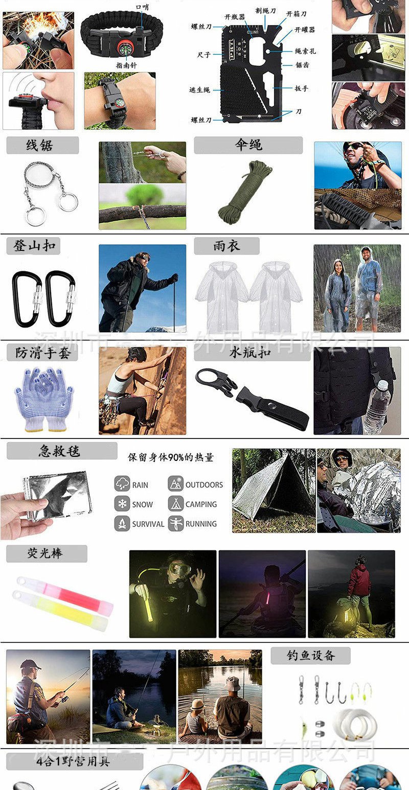 D户外野营求生工具套装多功能生存旅行露营登山应急用品 SOS急救