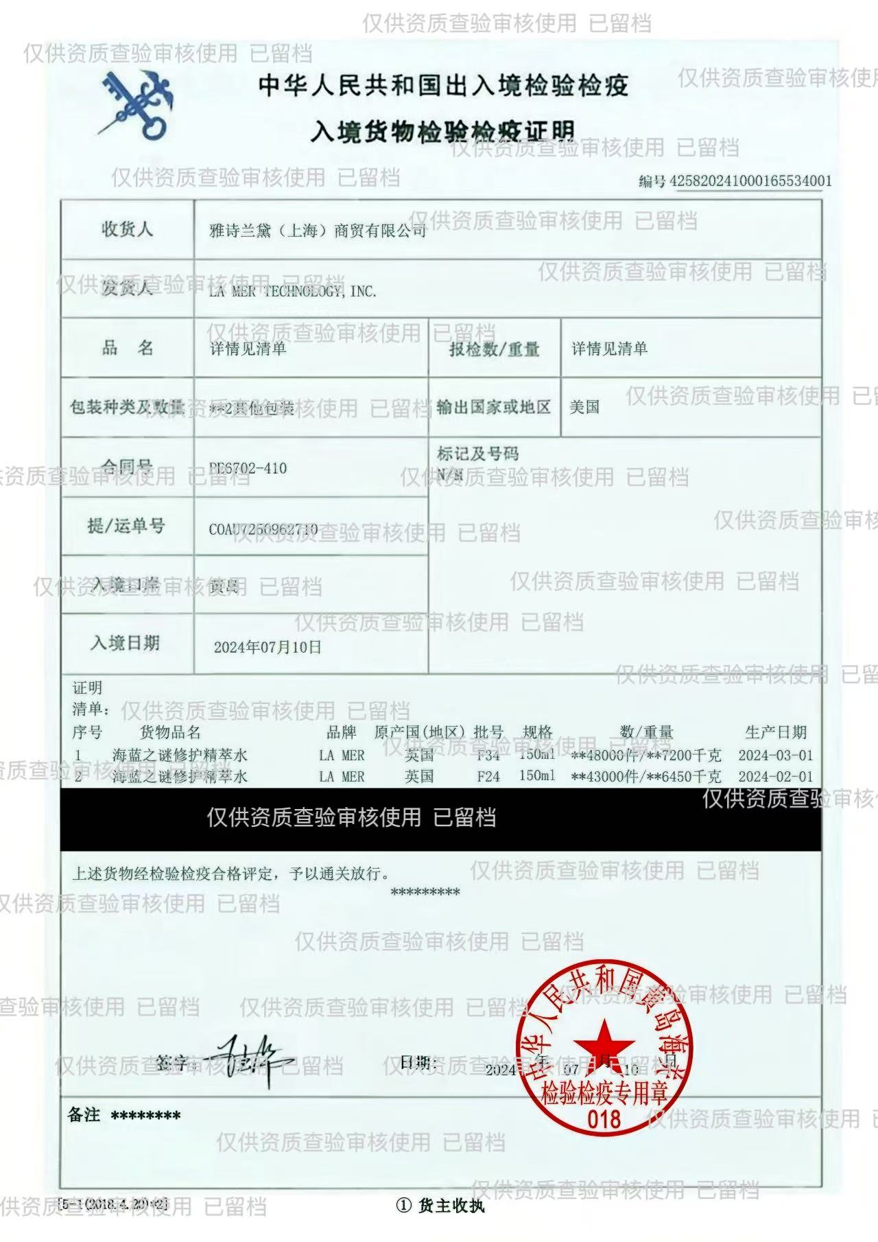 | 商品名:海蓝之谜沁润修护精萃水 规格:150ml 产地:英国 备案文号:国妆网备进字(沪)2021502963 产品功效:保湿k老、双重滋养、修肤强韧、提升光泽 适合人群:男女通用,敏敏肌,油痘肌可用 包装方式:全新玻璃瓶身设计(原装有盒有塑封) 使用方法:每日早晚清洁肌肤后,以指尖或化妆棉取适量精萃水,轻拍于面部及颈部。 注意事项:因个人肤质不同,如有不适,请立即停止使用。使用后盖好盖子,请置于婴幼儿触及不到之处,请勿于极高温度、极低温度下或日光直射处存放。 温馨提示: 同一瓶La mer产品,如果是放置在浴室或者冰箱之类温差较大的环境中,会容易造成水油分离,精华可能出现上稀下稠的情况。同样的情况在时间跨越夏冬两季时也会出现,所以请将产品放置在室内,精华和面霜会有薄厚甚至结晶的状态。因为海藻提取物发酵,每年每月的植物酸碱度都会受气候变化从而导致精华和面霜发酵后膏体软硬,精华稀薄的发生。 所有护肤品,都是有边际效应的。比如初用时惊艳之后则原地踏步没有进步。或者之前用没过敏,现在用反而过敏,这是因为换季(尤其春季,俗称“春敏") ,环境温度变化,饮食,情绪等原因引起的刺痒、脱皮、泛红、灼热、冒痘等等等等...几肤会比冬季更干燥。但是这都不是真正的过敏,只是皮肤需要适应季节的环境压力,所以一定要做好补水防晒,也不建议频繁更换护肤品。 储存方式:避免阳光照射,置于阴凉干燥处。 发货时效:24-48小时 售后标准:支持七天无理由退换(未拆封且配件齐全,不影响二次销售) |