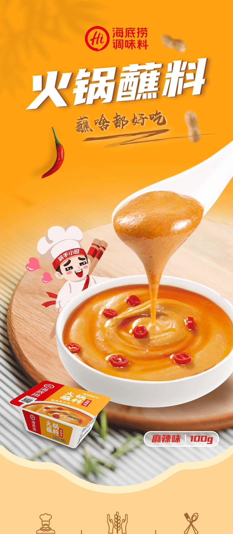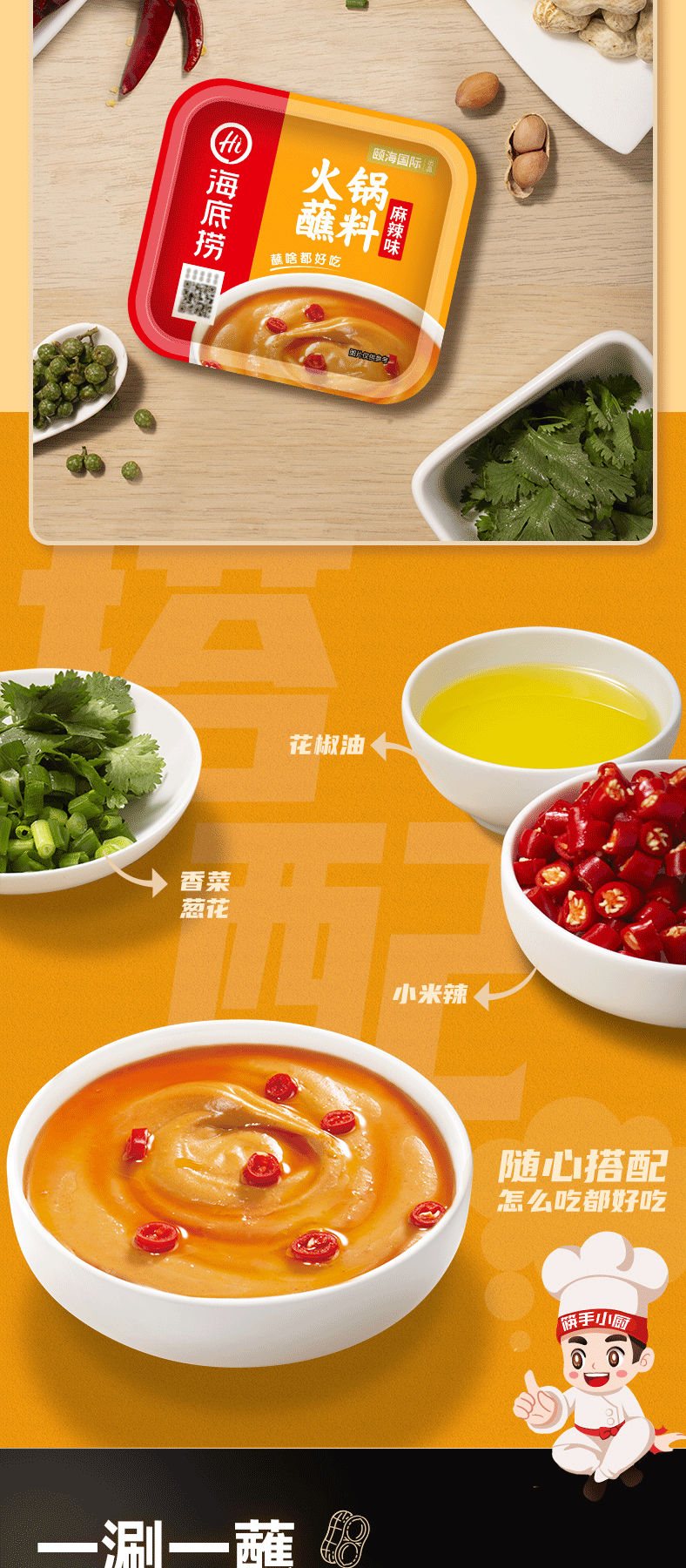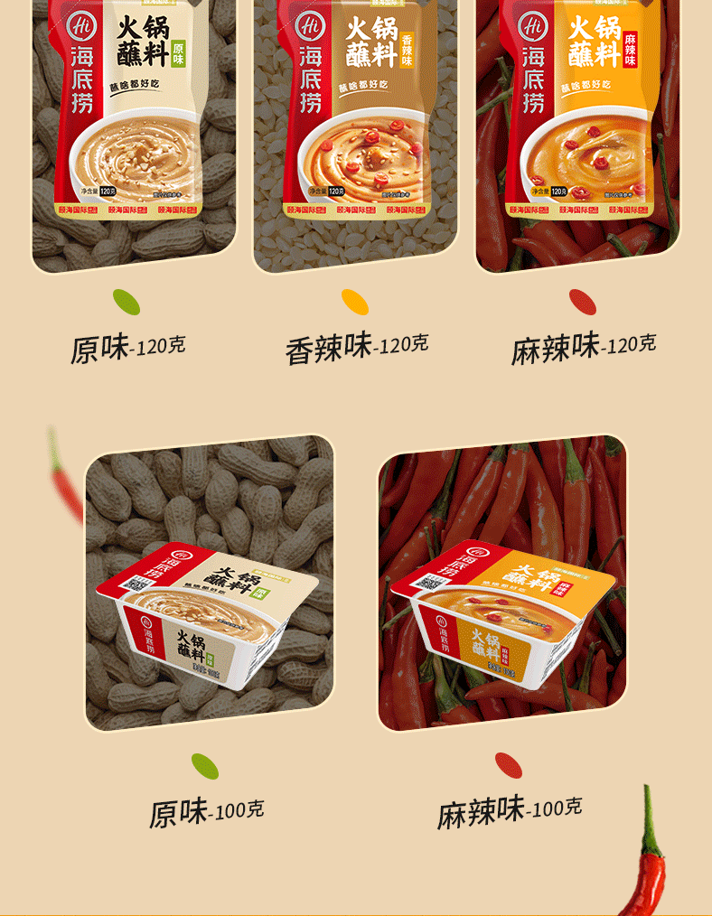 海底捞火锅蘸料 花生芝麻酱蒜蓉沙茶干碟油碟牛肉香辣烧烤烤肉酱100g/盒