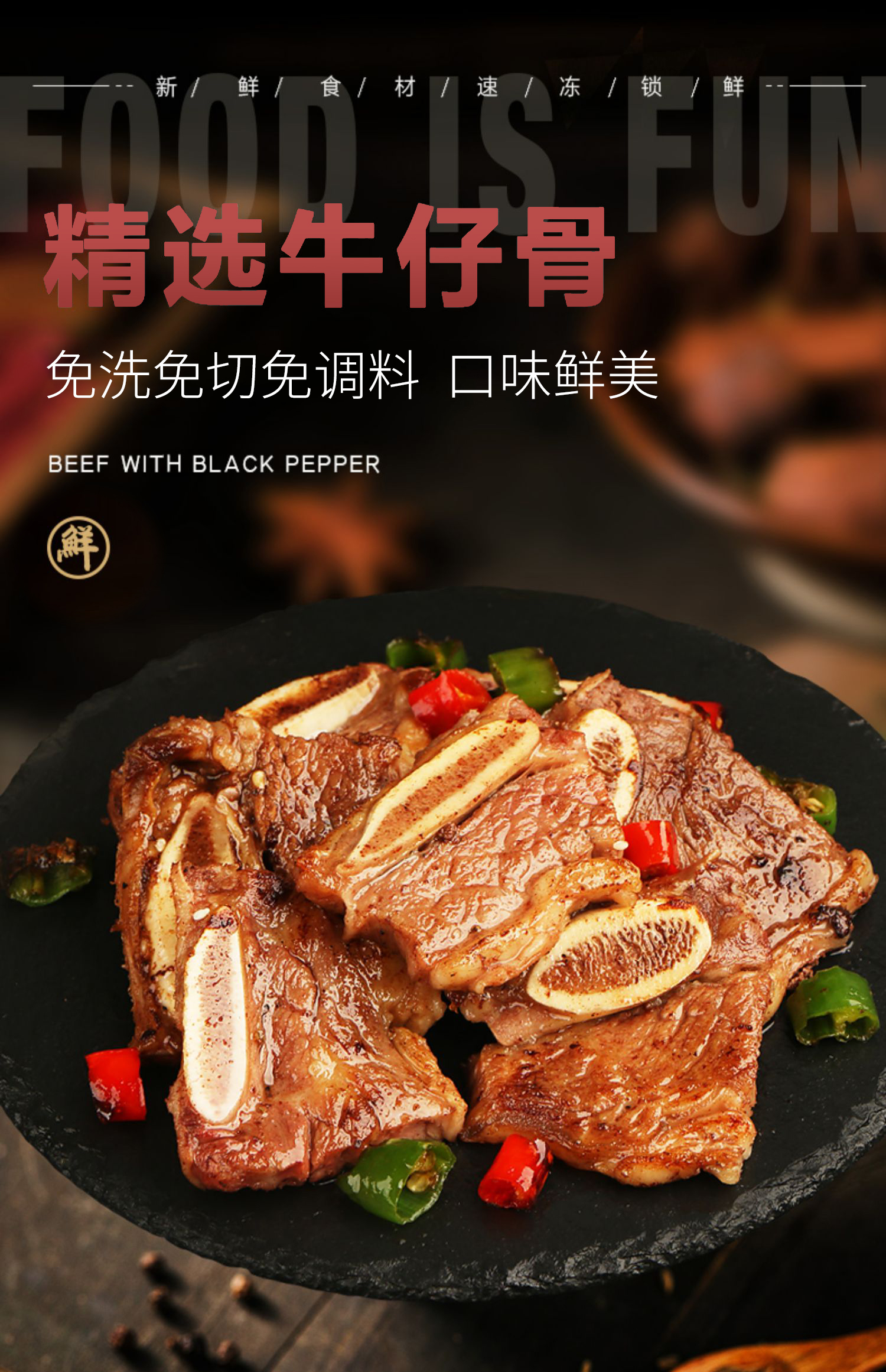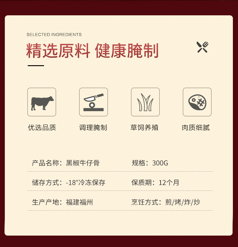 澳鼎丰黑椒牛仔骨10包3000g【整块切割 健康腌制】