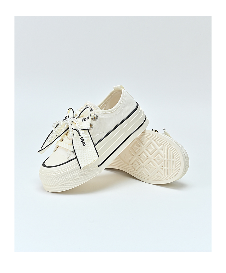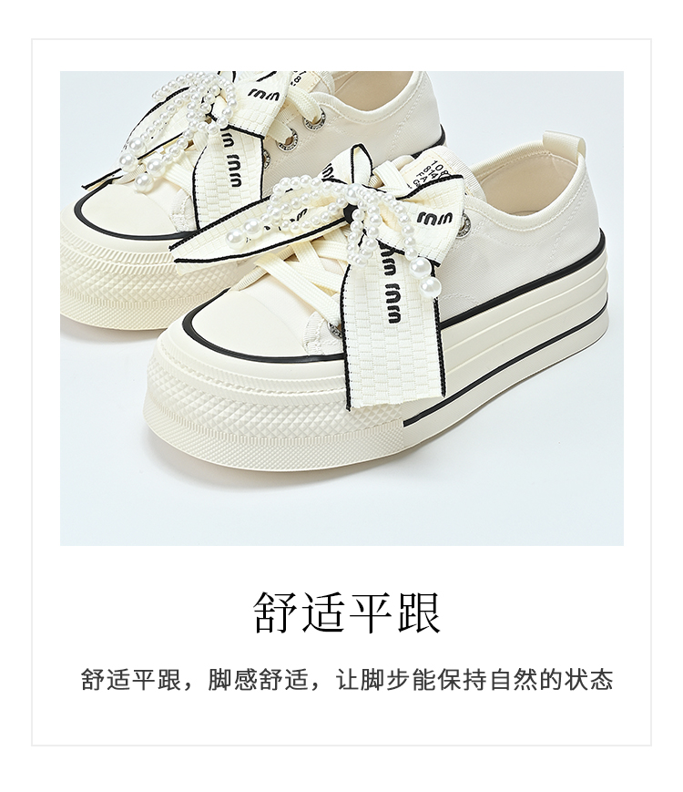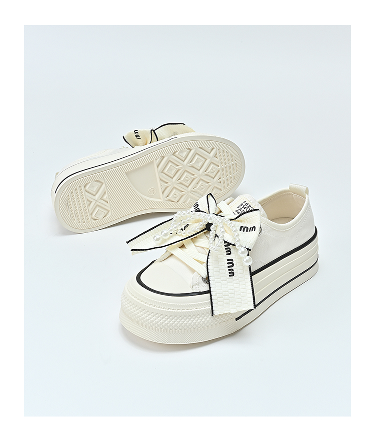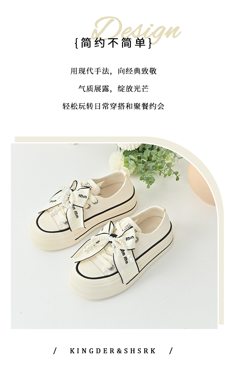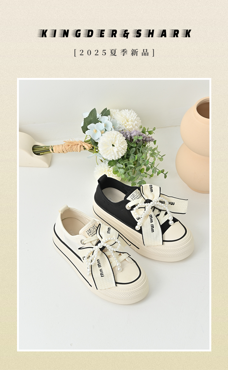 经典鲨2025年夏季新品网红款潮流珍珠系带蝴蝶结休闲板鞋女KW142-529161