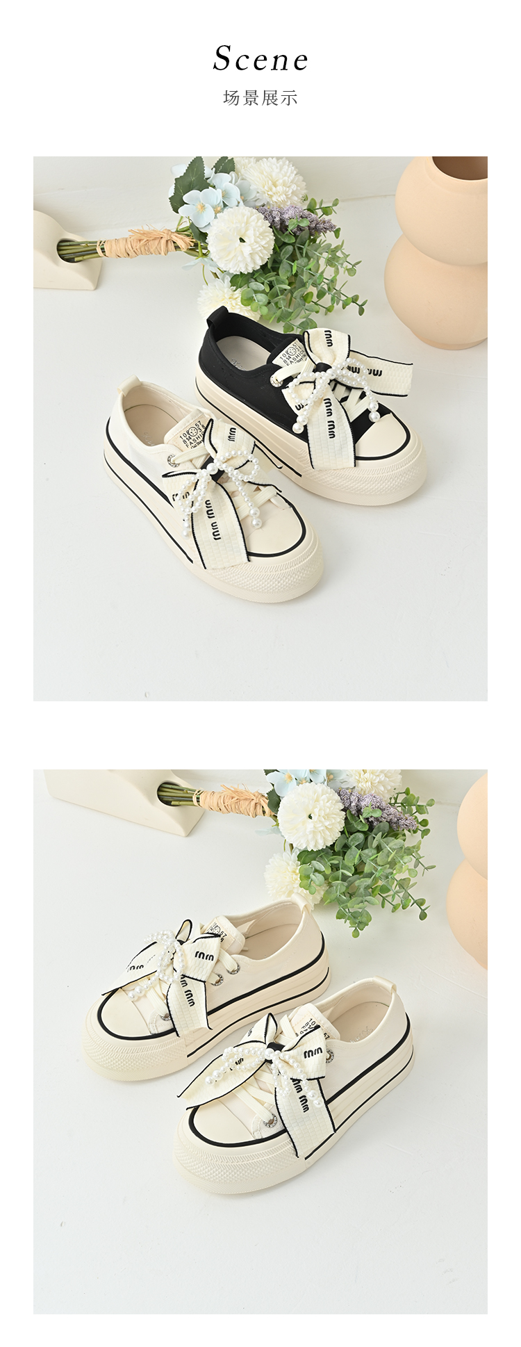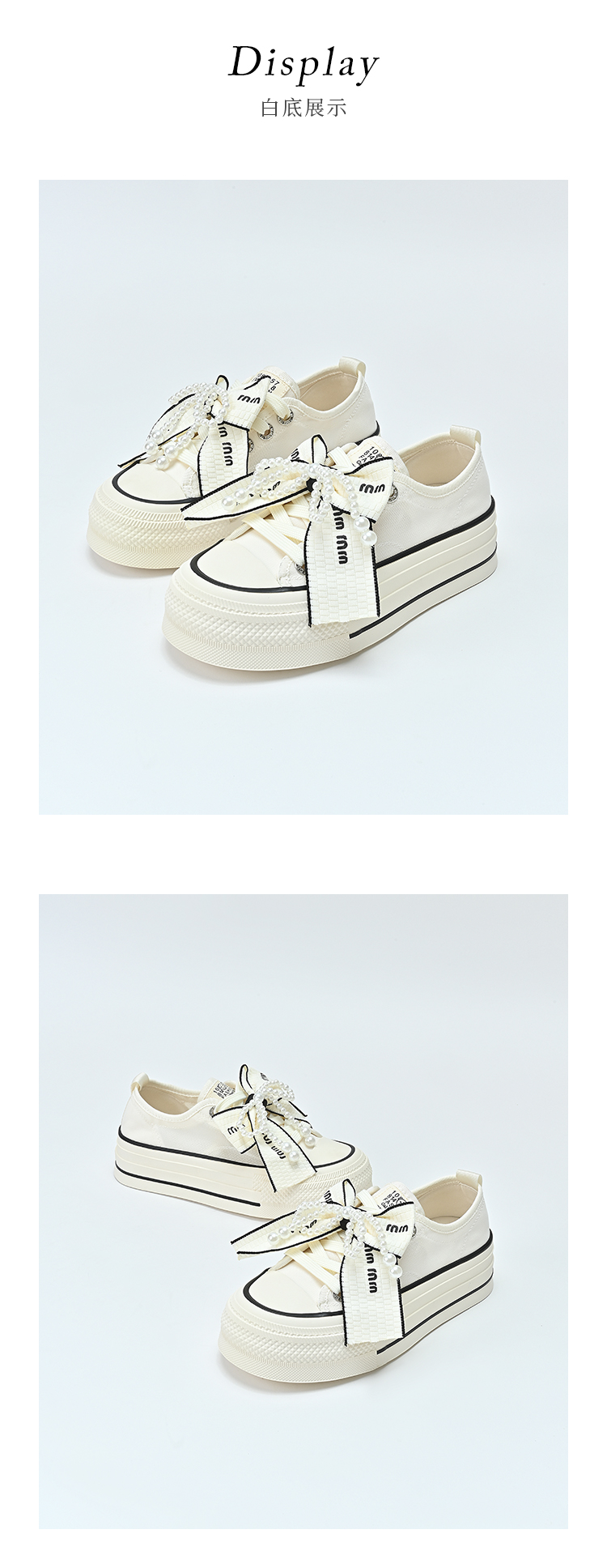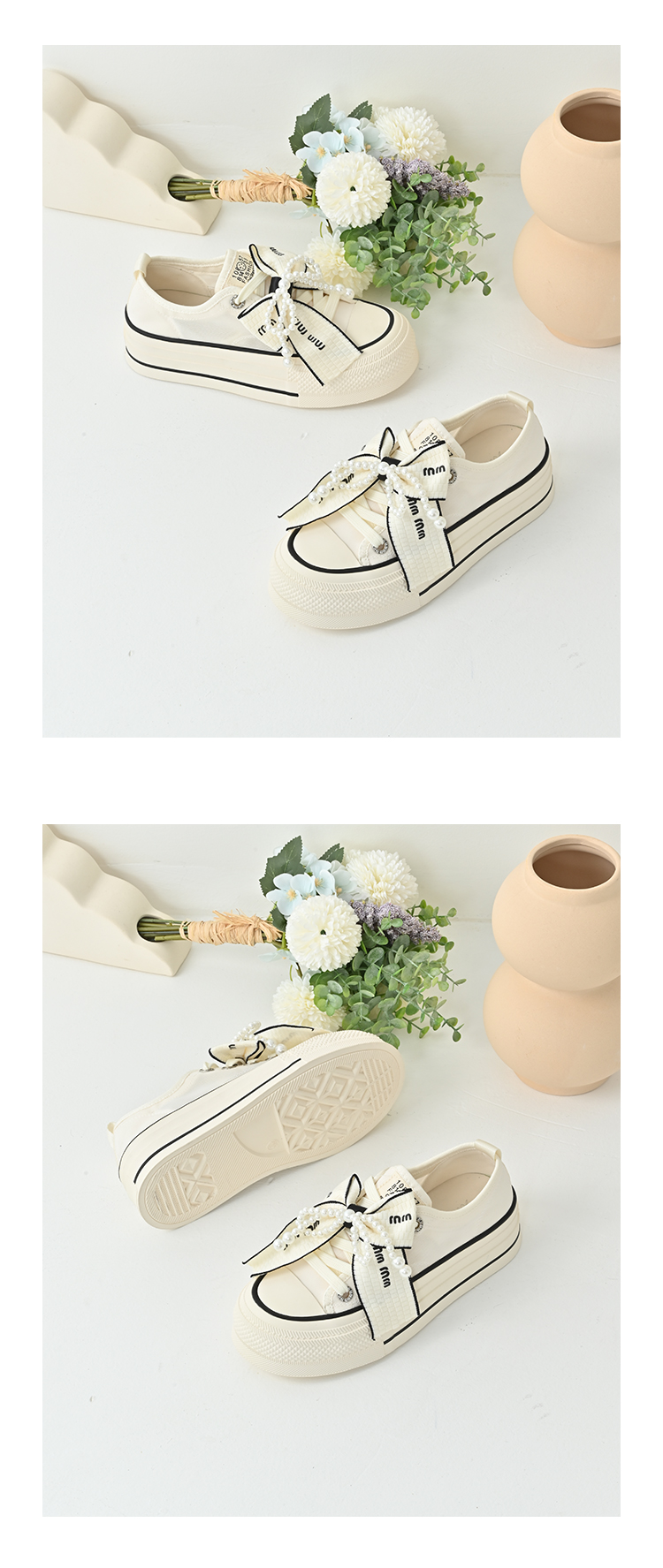 经典鲨2025年夏季新品网红款潮流珍珠系带蝴蝶结休闲板鞋女KW142-529161