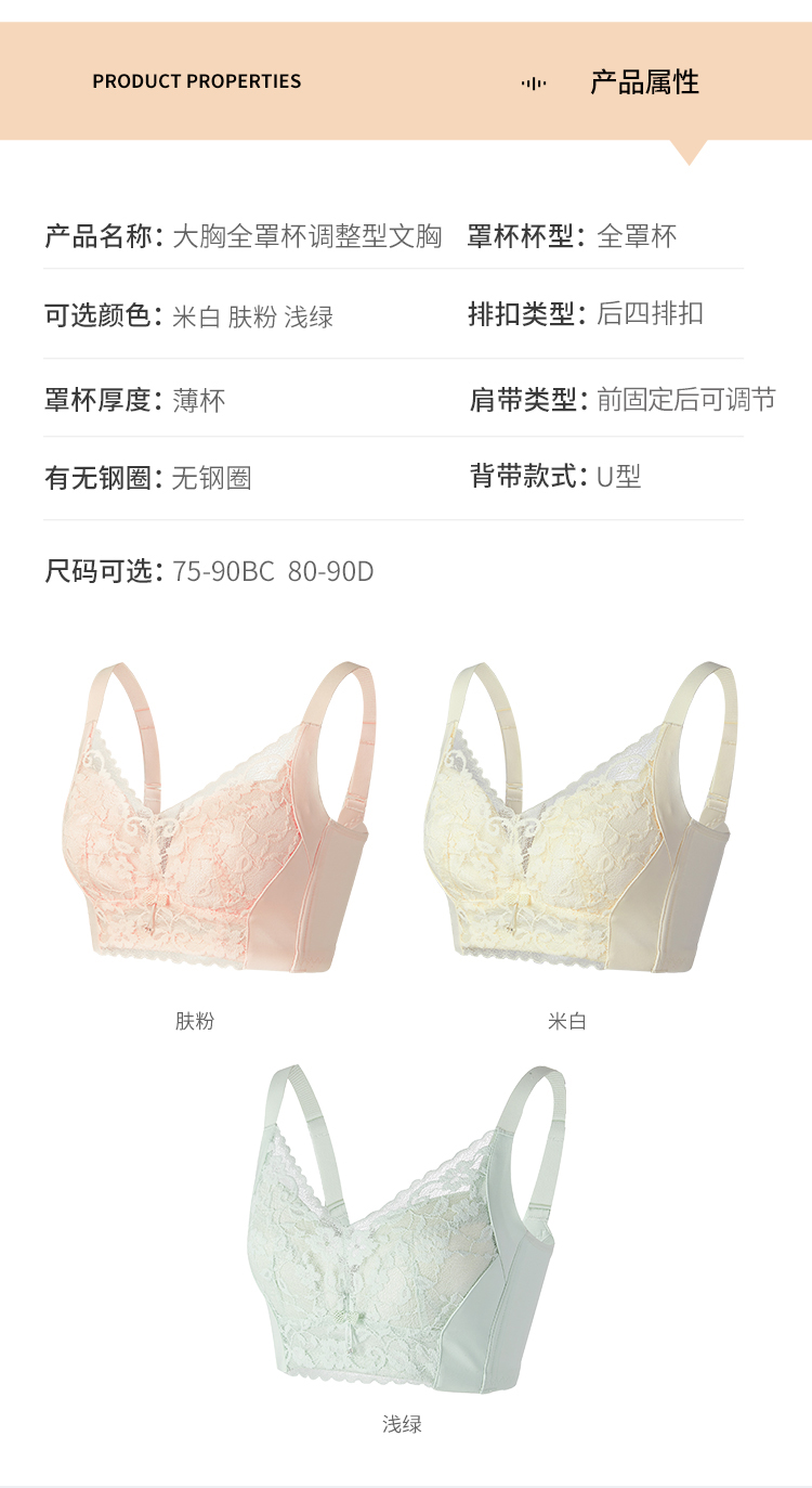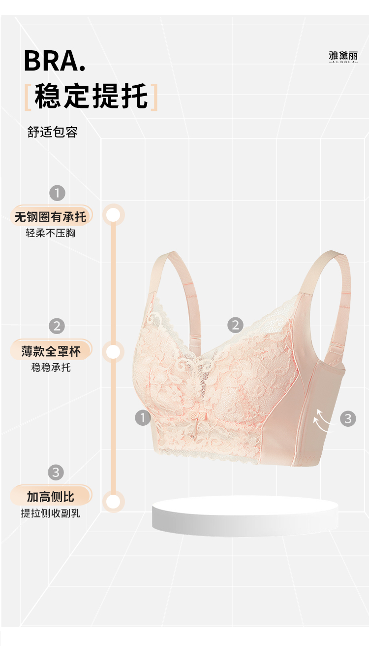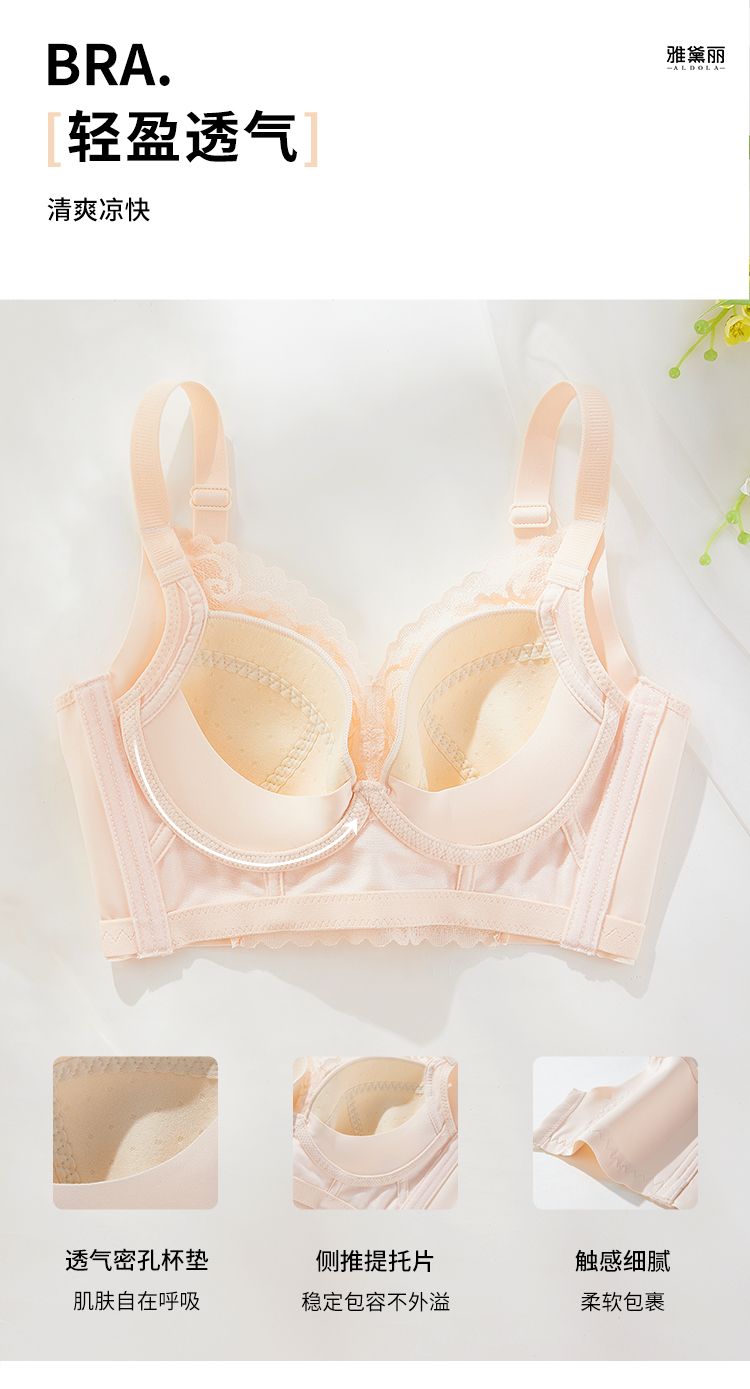 雅黛丽内衣夏季薄款大胸显小显瘦文胸无钢圈性感蕾丝调整型胸罩