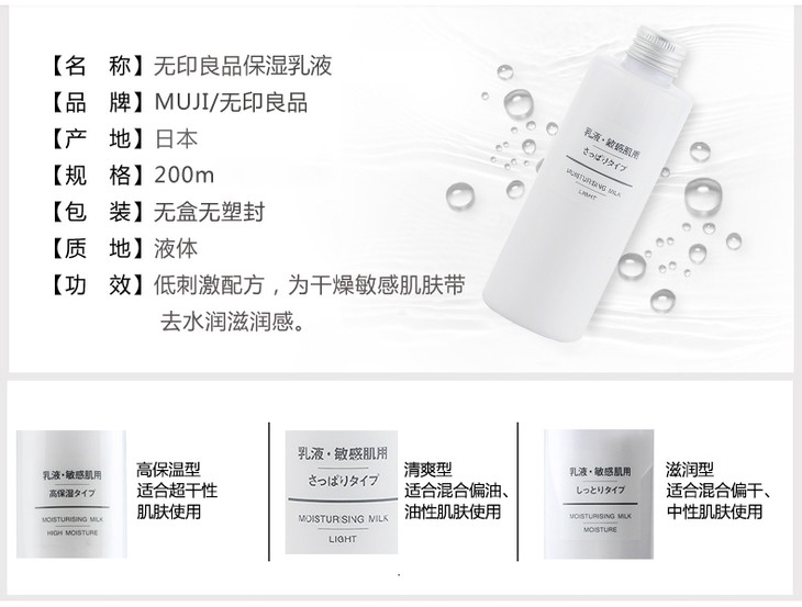 〖香港直邮〗日本无印良品敏感保湿舒柔乳液 200ml【有书私享】