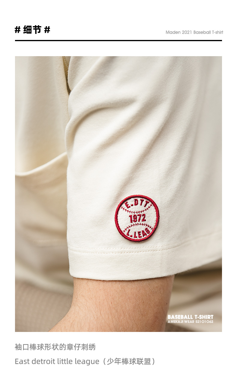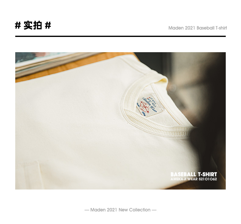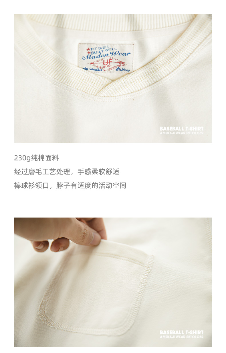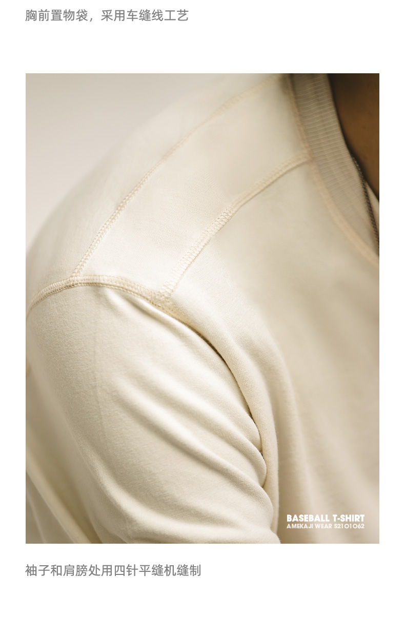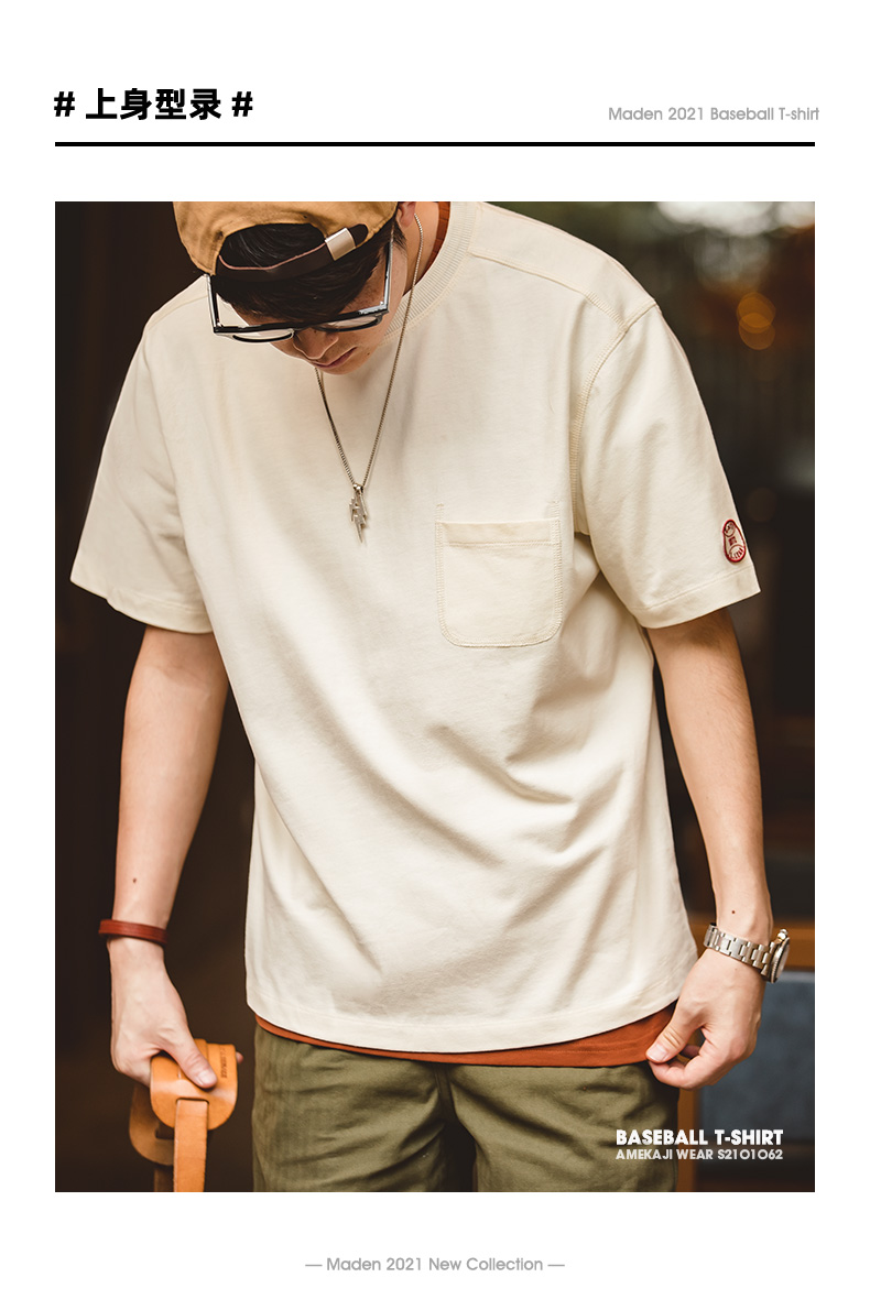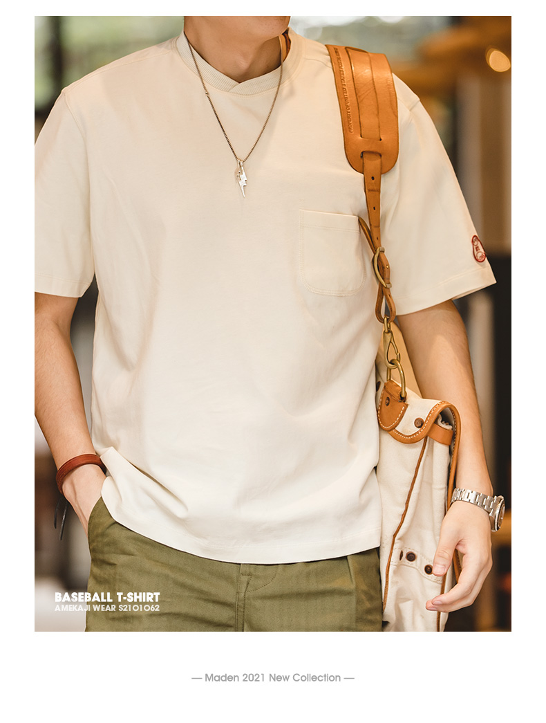 马登工装 美式复古重磅T恤棒球领口袋宽松纯棉半袖短袖打底衫男夏