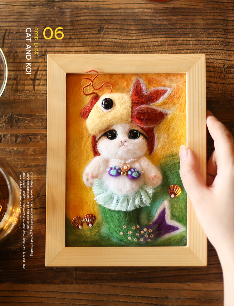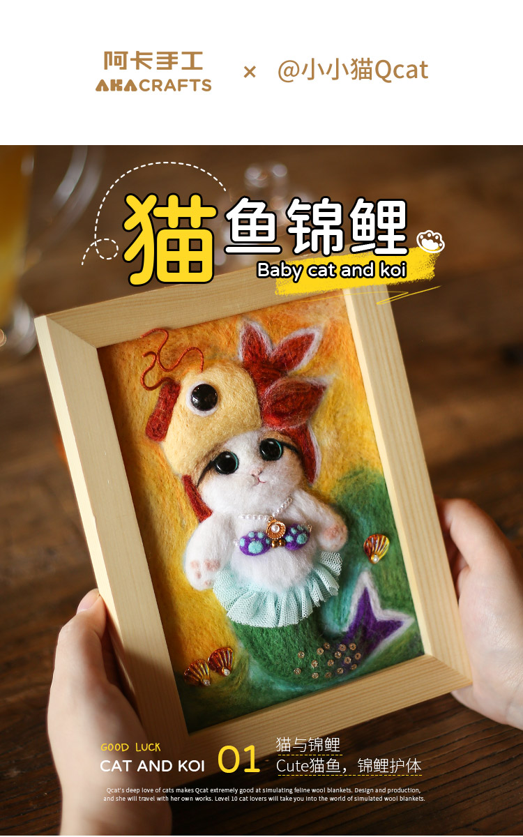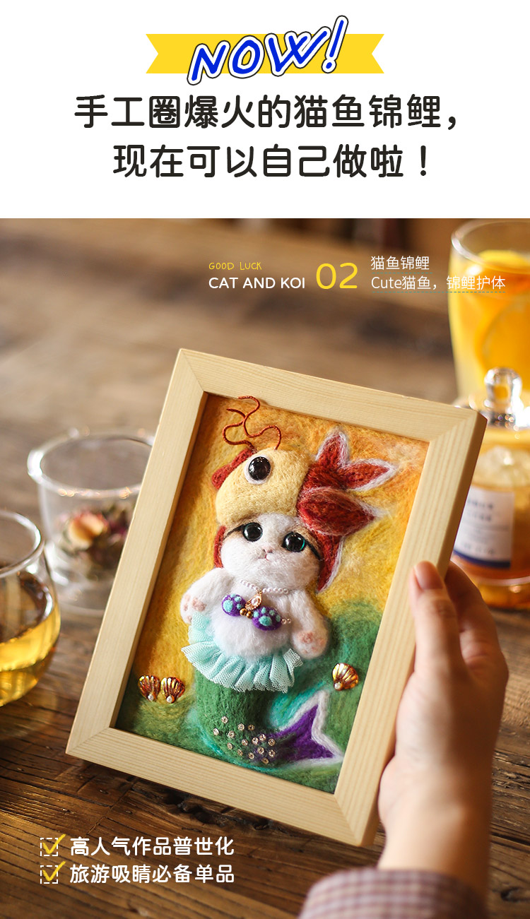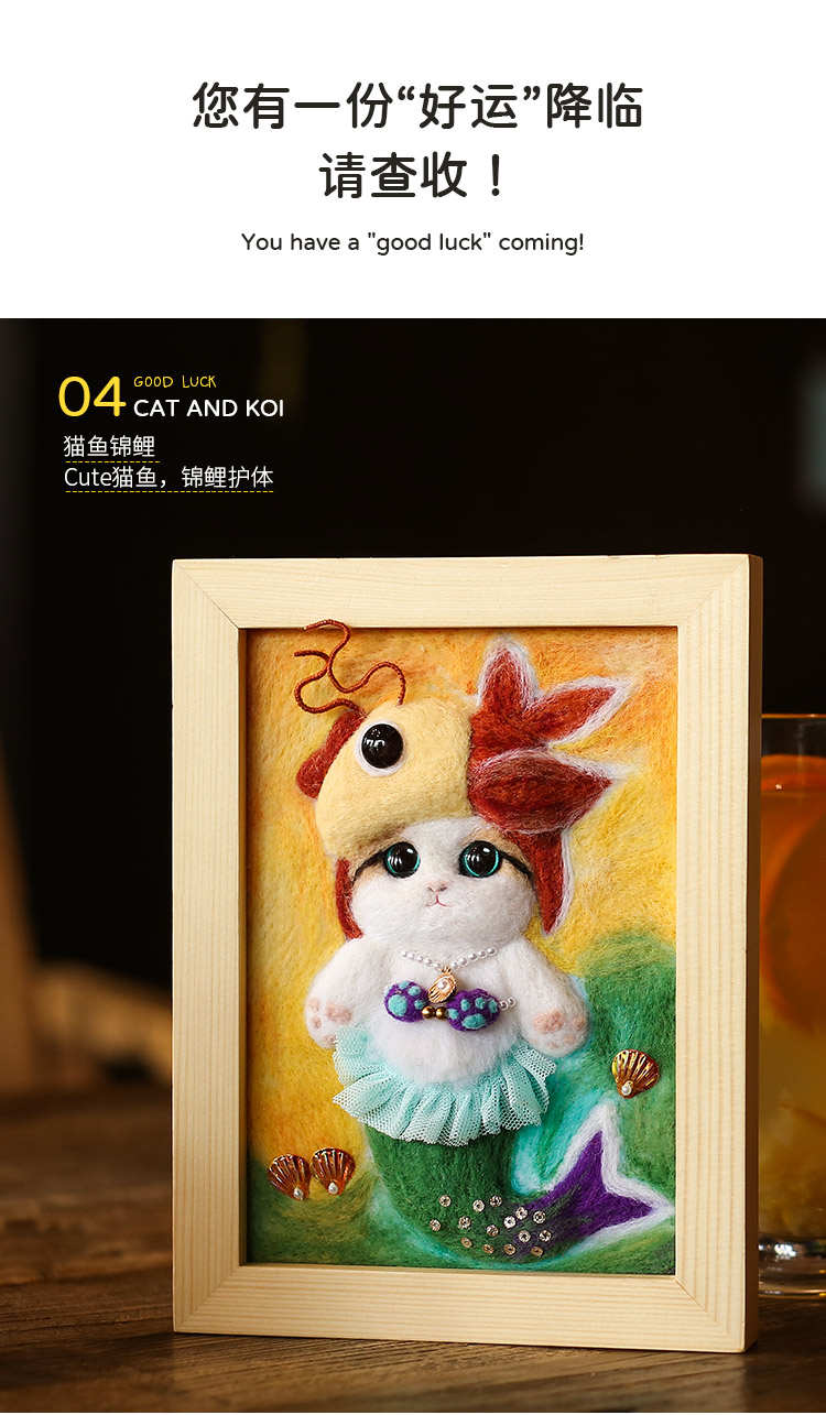 【羊毛毡新品】猫鱼锦鲤羊毛毡画diy材料包