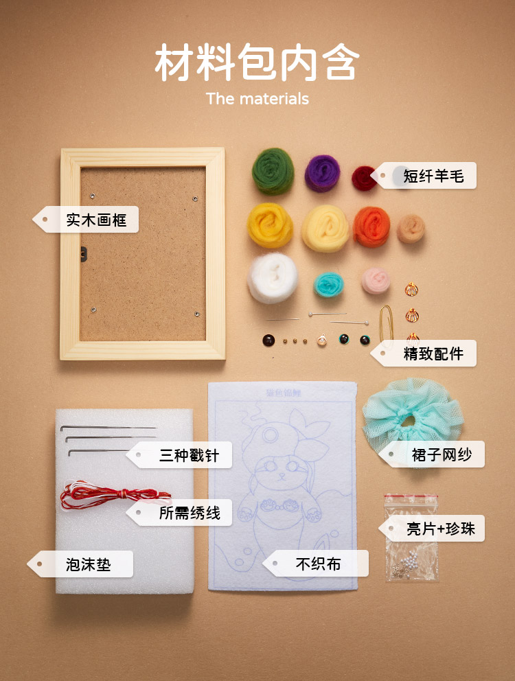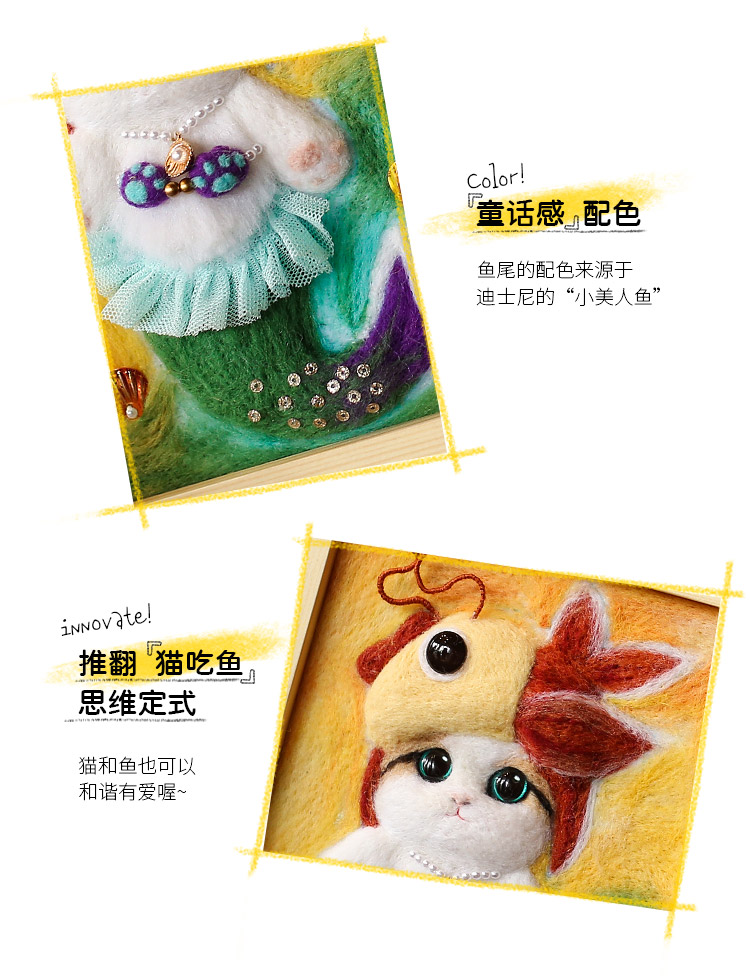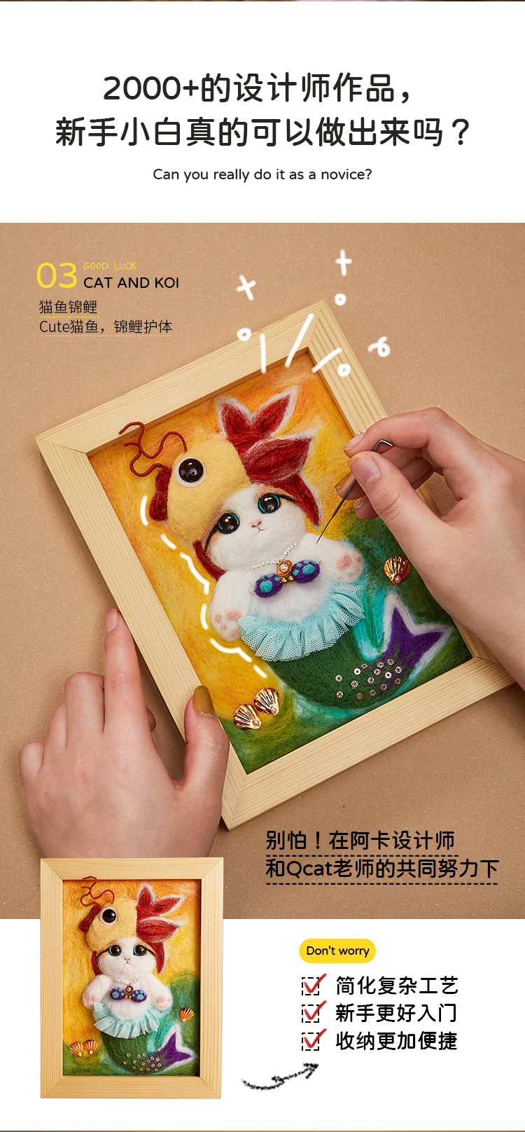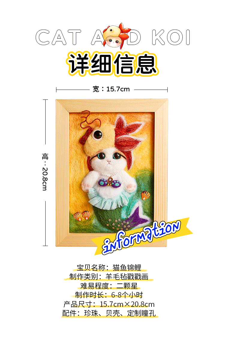 【羊毛毡新品】猫鱼锦鲤羊毛毡画diy材料包