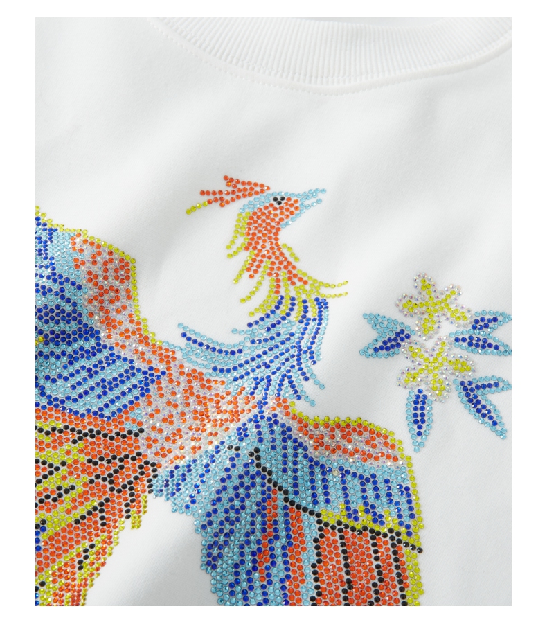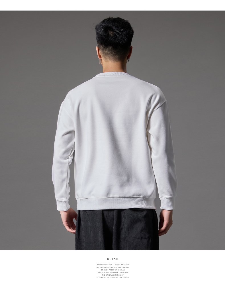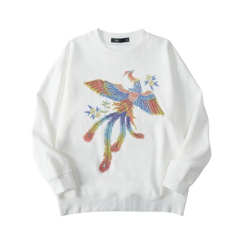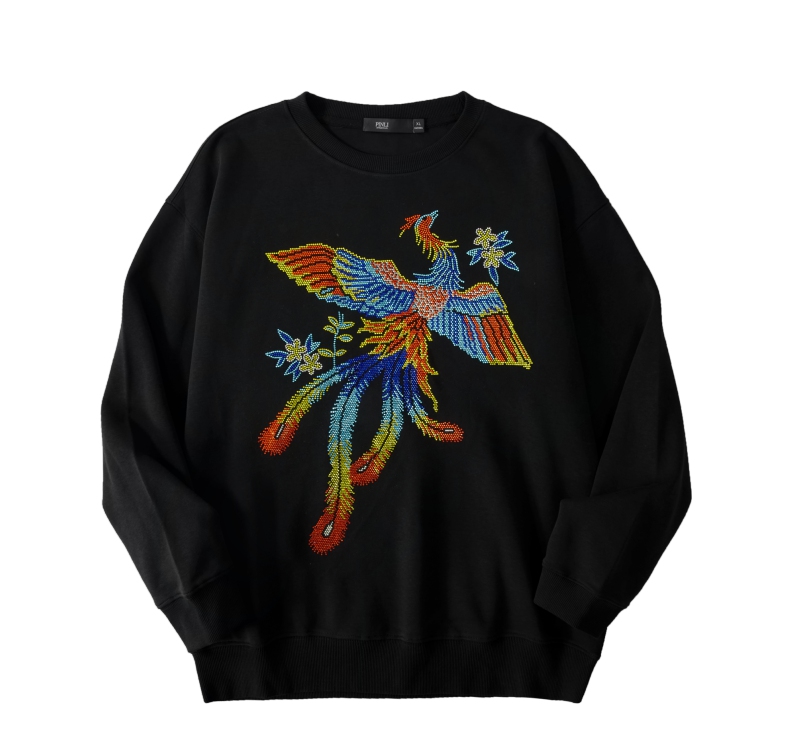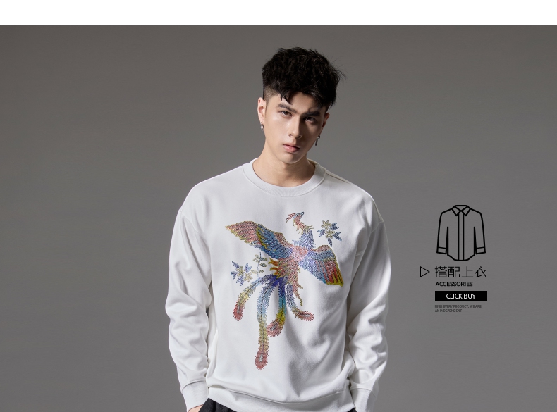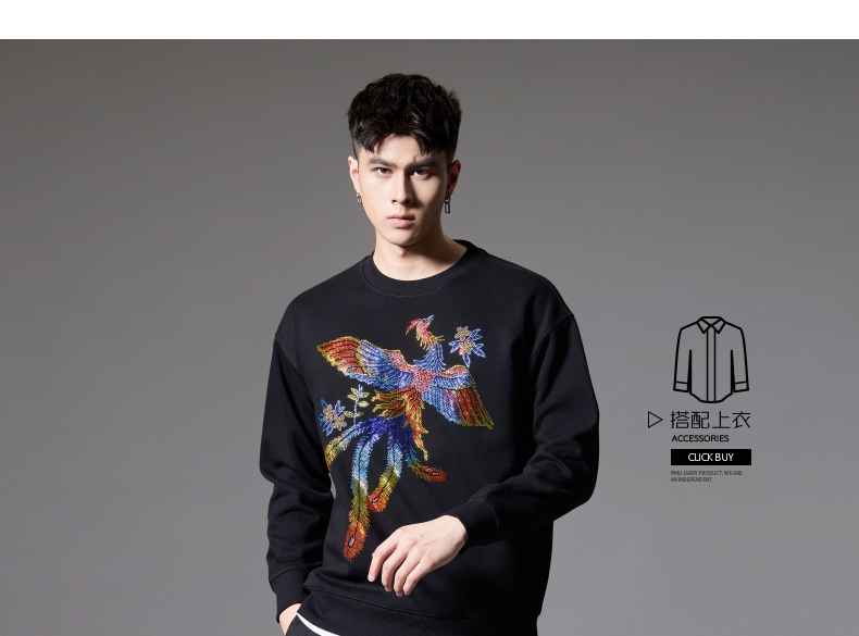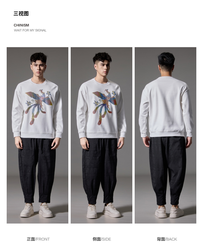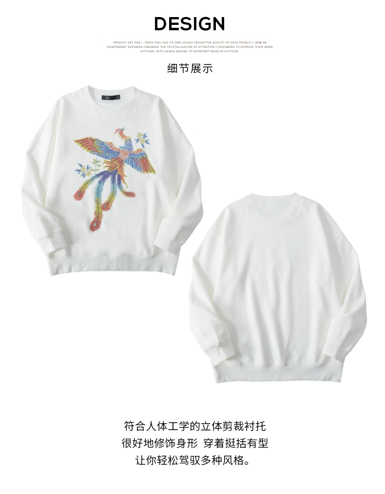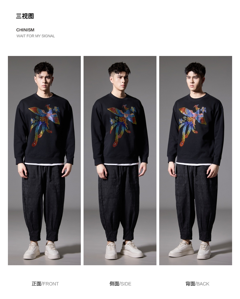 PINLI品立2024秋季新款凤凰彩钻套头卫衣国潮休闲宽松圆领男上衣BG243109010