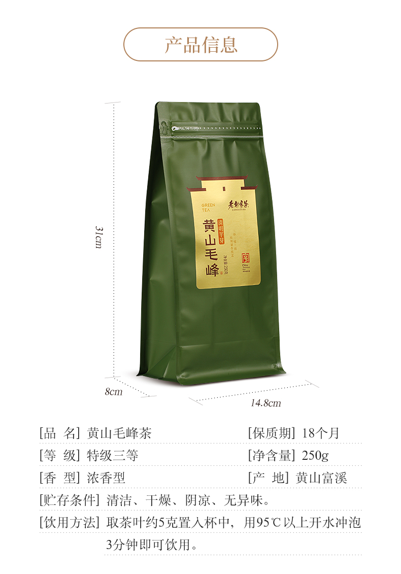 老谢家茶黄山毛峰茶叶雨前绿茶250g