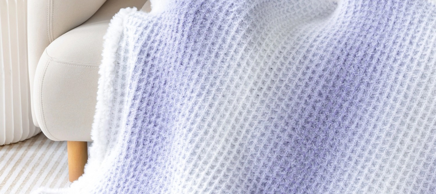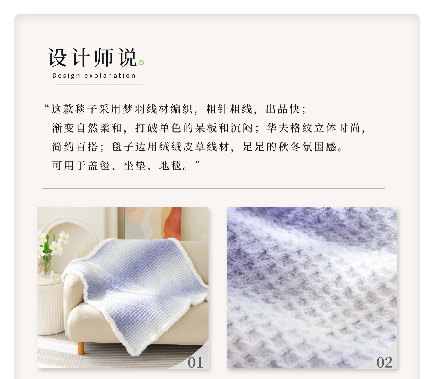 苏苏姐家新手华夫格渐变毯手工diy编织钩针梦羽毯子毛线团材料包