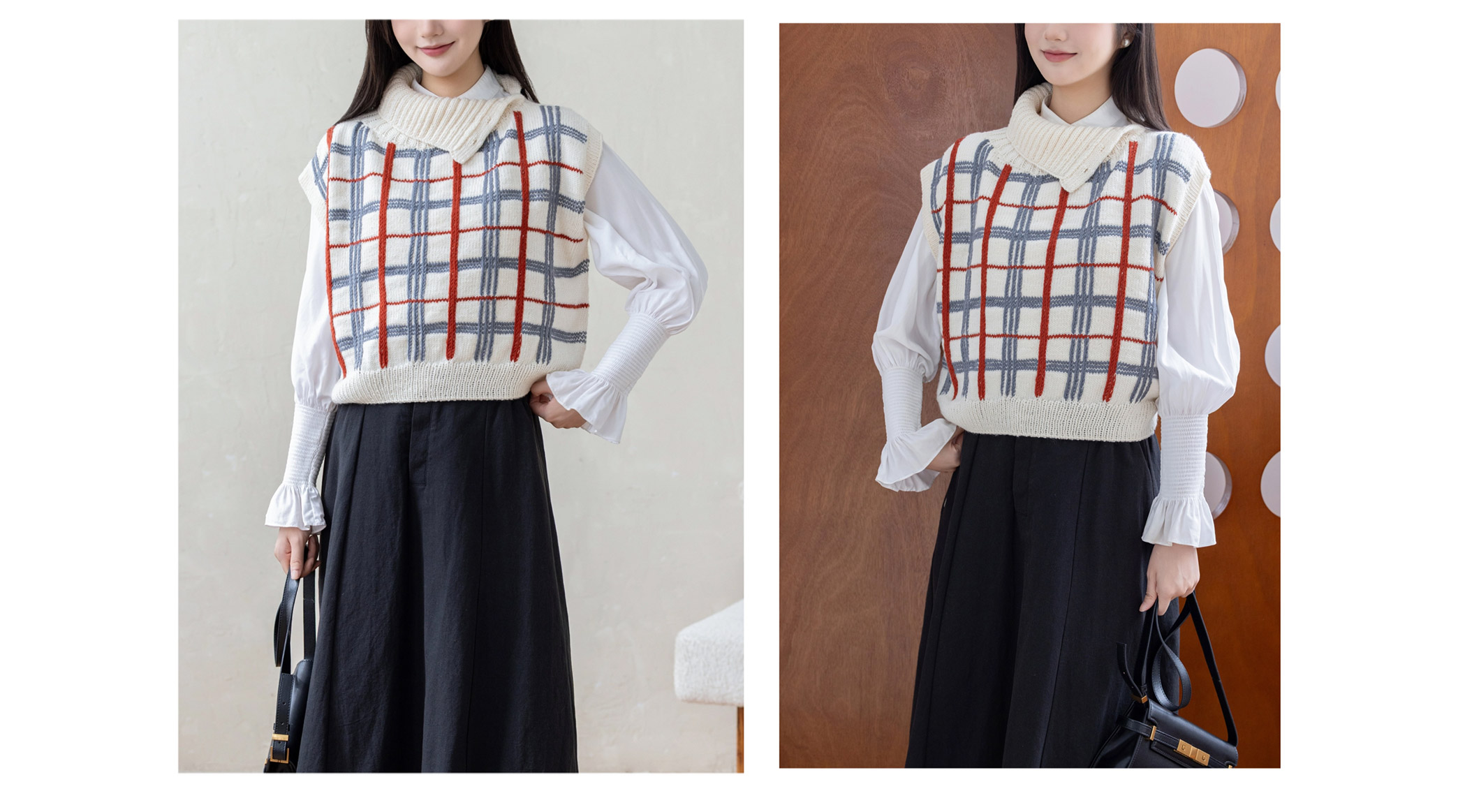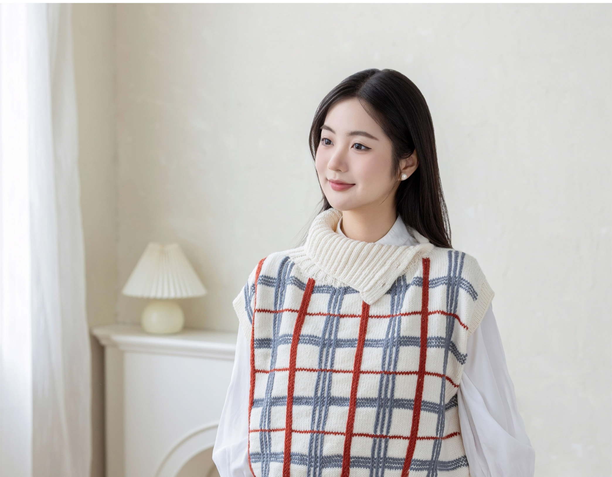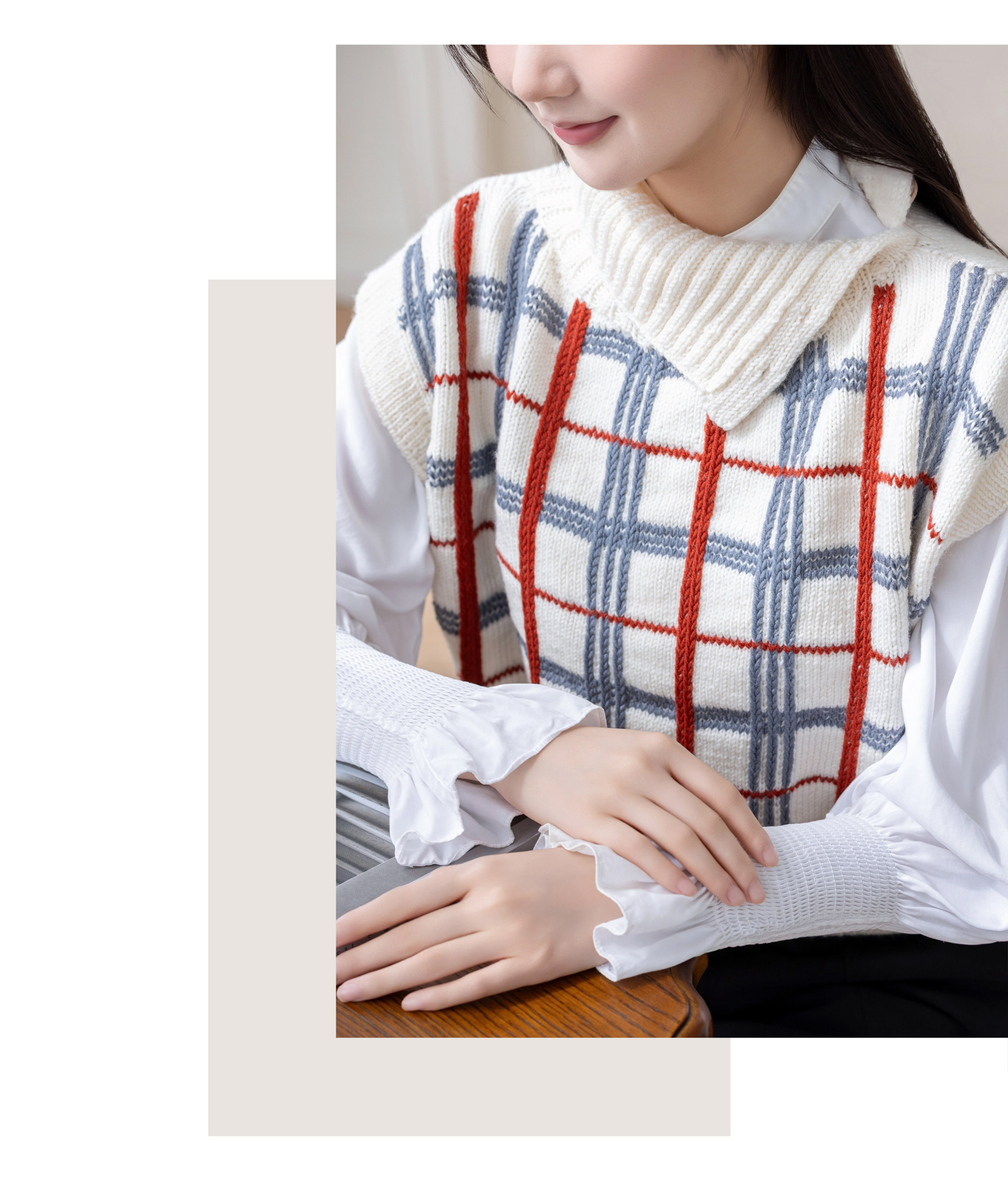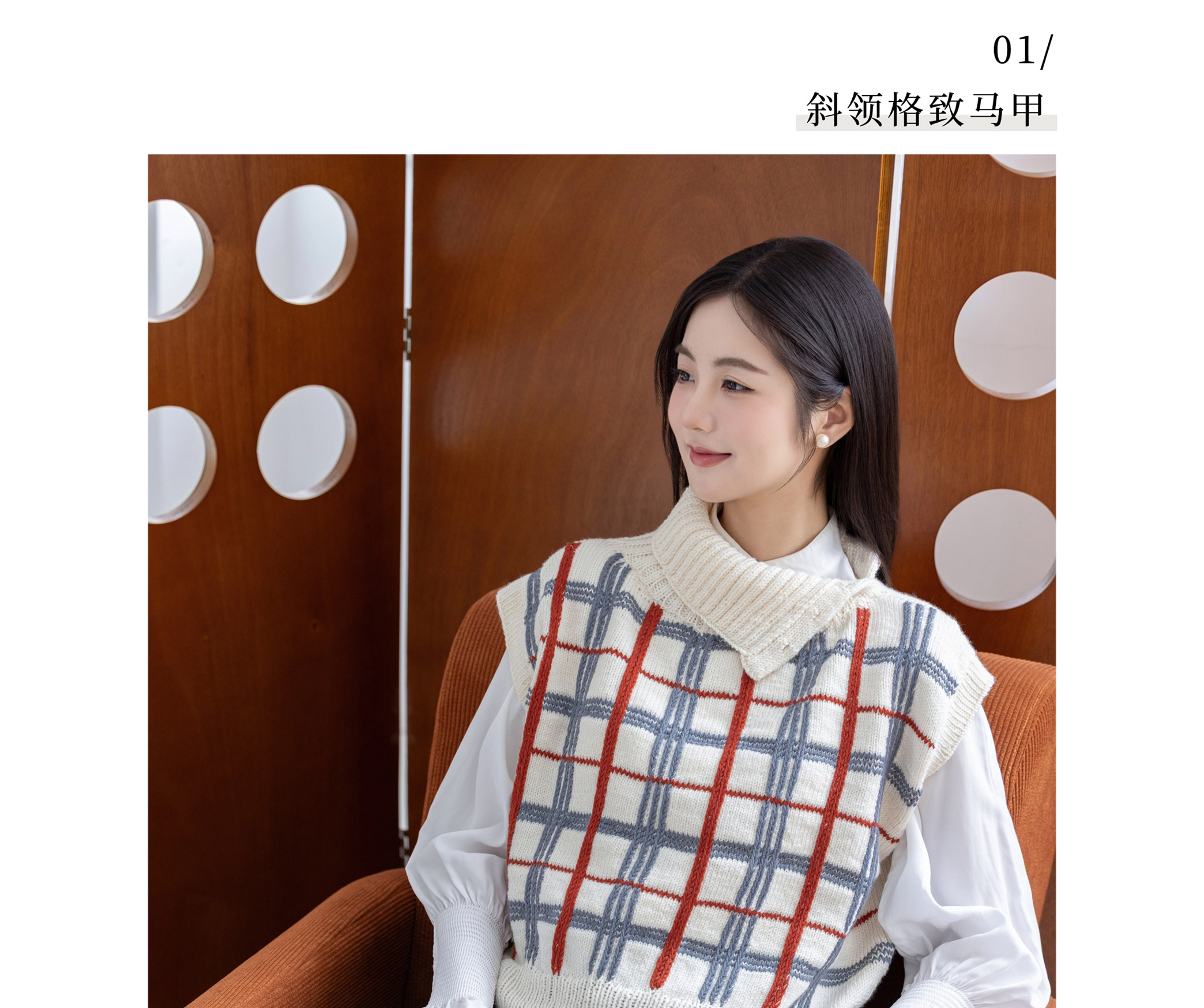 苏苏姐家斜领格致马甲手工diy棒针编织毛衣羊毛线团材料包