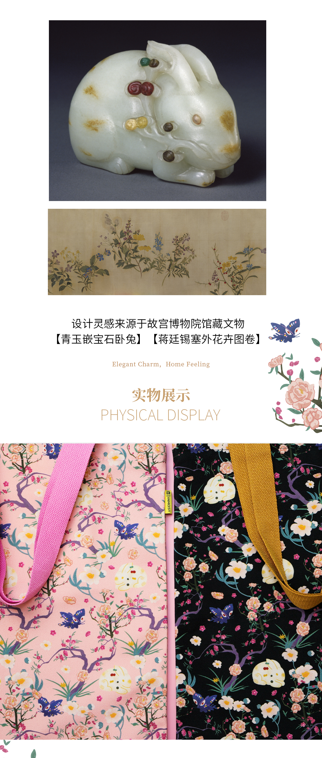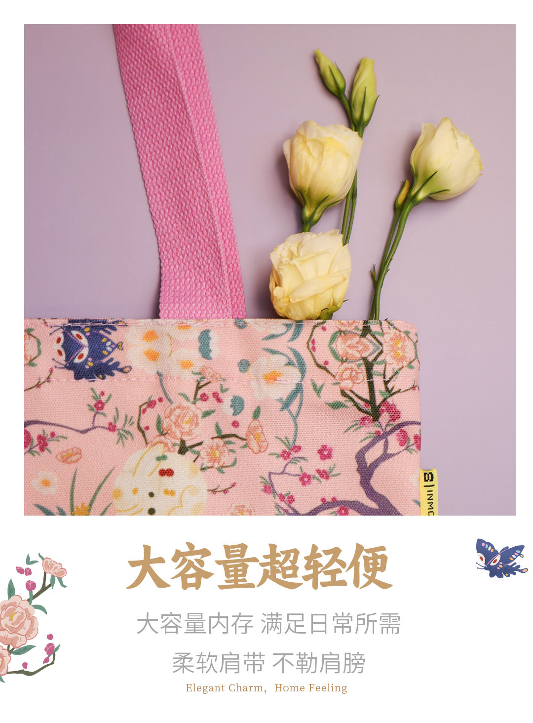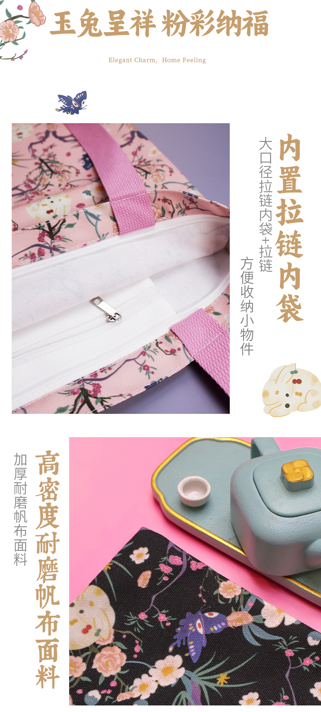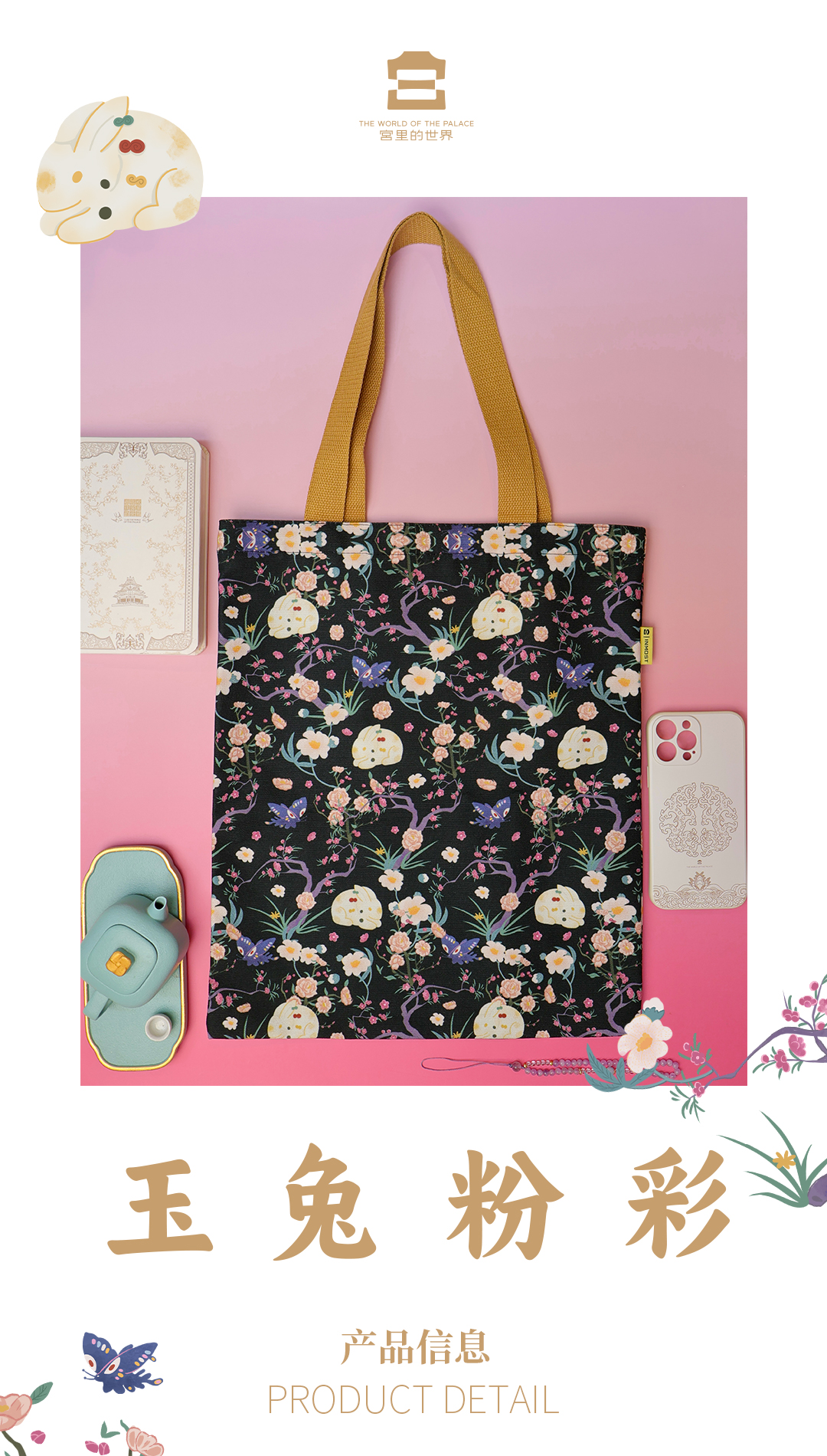 【宫里帆布袋】玉兔粉彩系列帆布袋