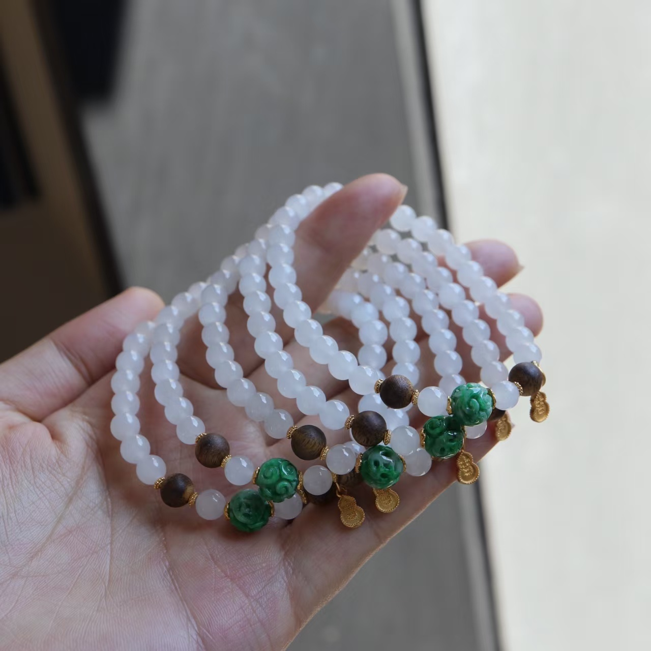 搭配天然翡翠雕刻珠沉香6mm珠必生闻清甜凉意沁心脾