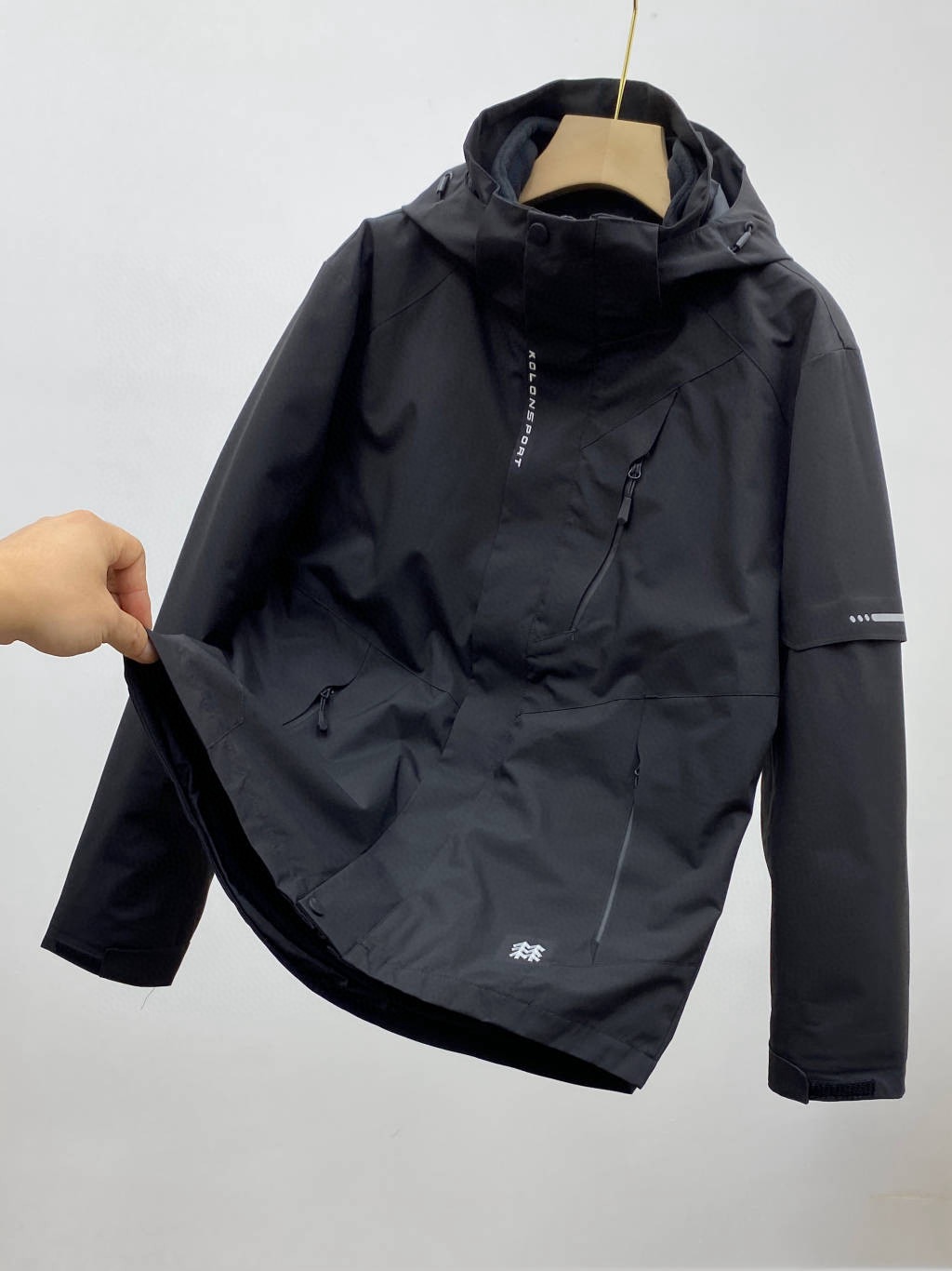 软壳三合一户外休闲衣运动外套男女内胆冲锋衣3IN1一衣三穿 外壳与内胆皆可单穿或组合穿搭,适应多种户外环境。外壳使用2L防水面料,具有防风,防水功能!可拆卸兜帽,可同时收紧阻挡寒风魔术贴袖,防止风雨灌入,前门襟防风设计,门禁处3M反光字母LOGO、低调内涵 彰显品牌!前胸口袋使用防水拉链,下部有两个插袋,增强美观性的同时,满足户外运动B备物件的收纳需求!